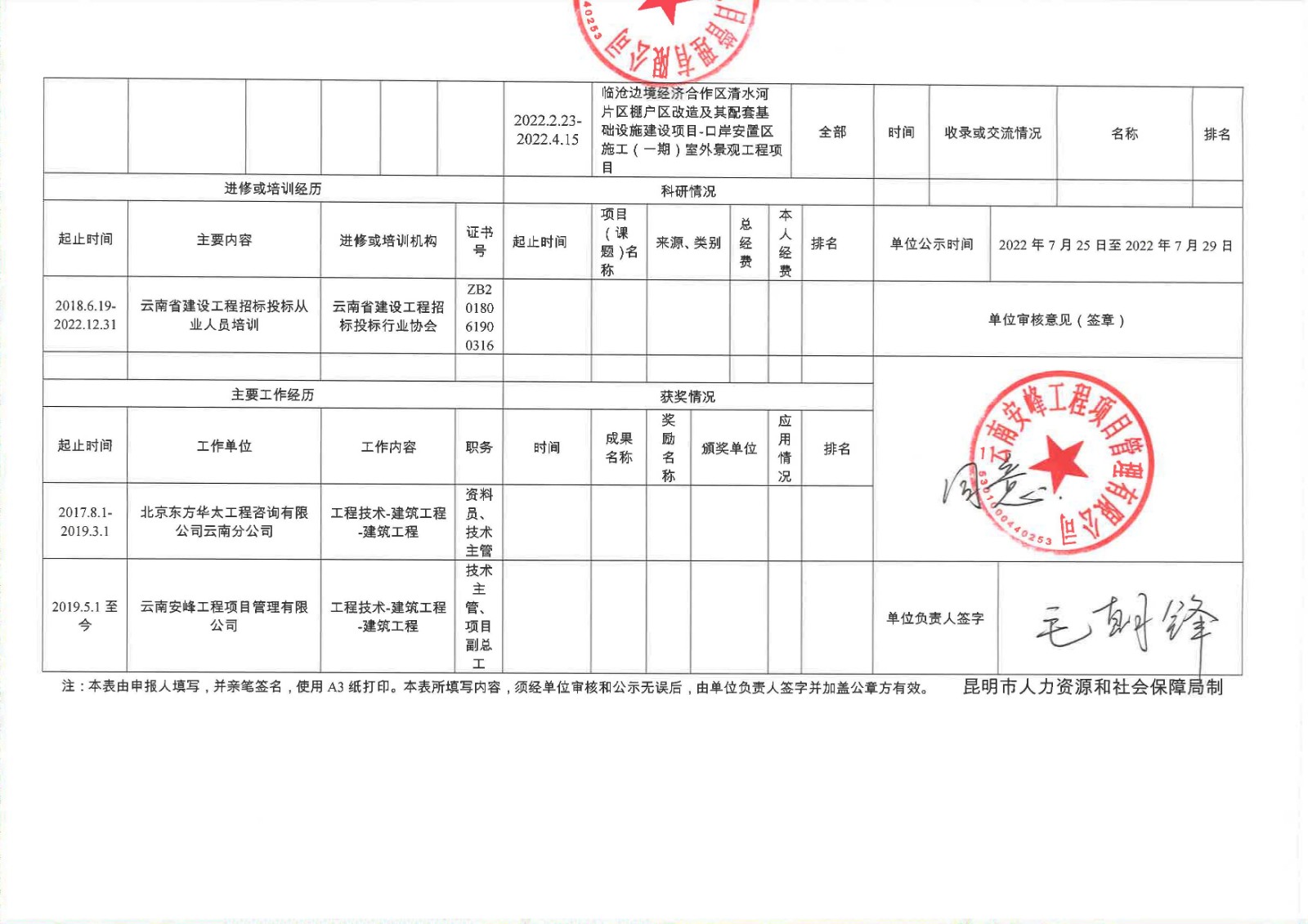 關(guān)于云南安峰工程項(xiàng)目管理有限公司員工王乾申報(bào)建筑工程系列(專(zhuān)業(yè))中級(jí)職稱(chēng)情況公示