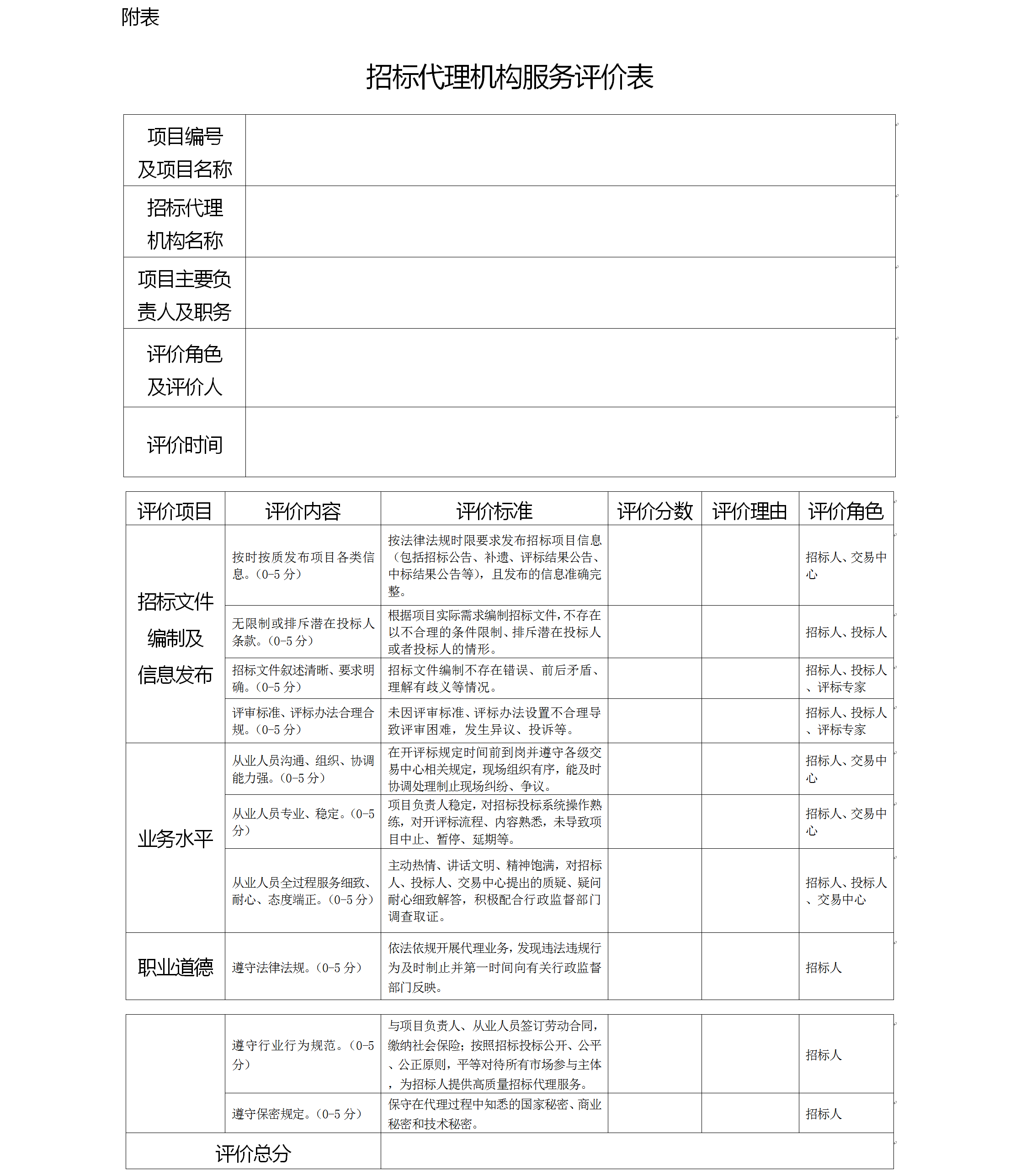 附表:招標(biāo)代理機(jī)構(gòu)服務(wù)評價表
