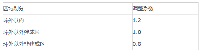 高程調(diào)整系數(shù)如下: