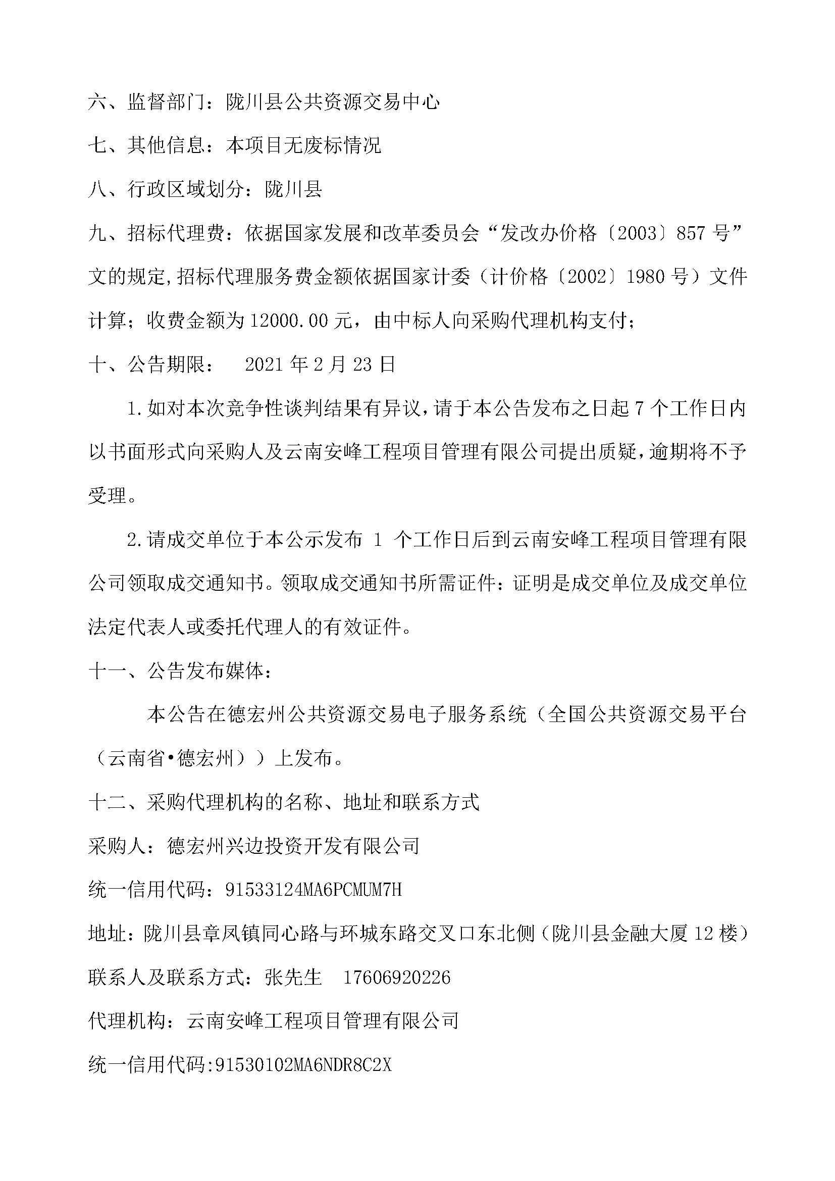隴川縣章鳳完全中學(xué)綠化工程成交公告