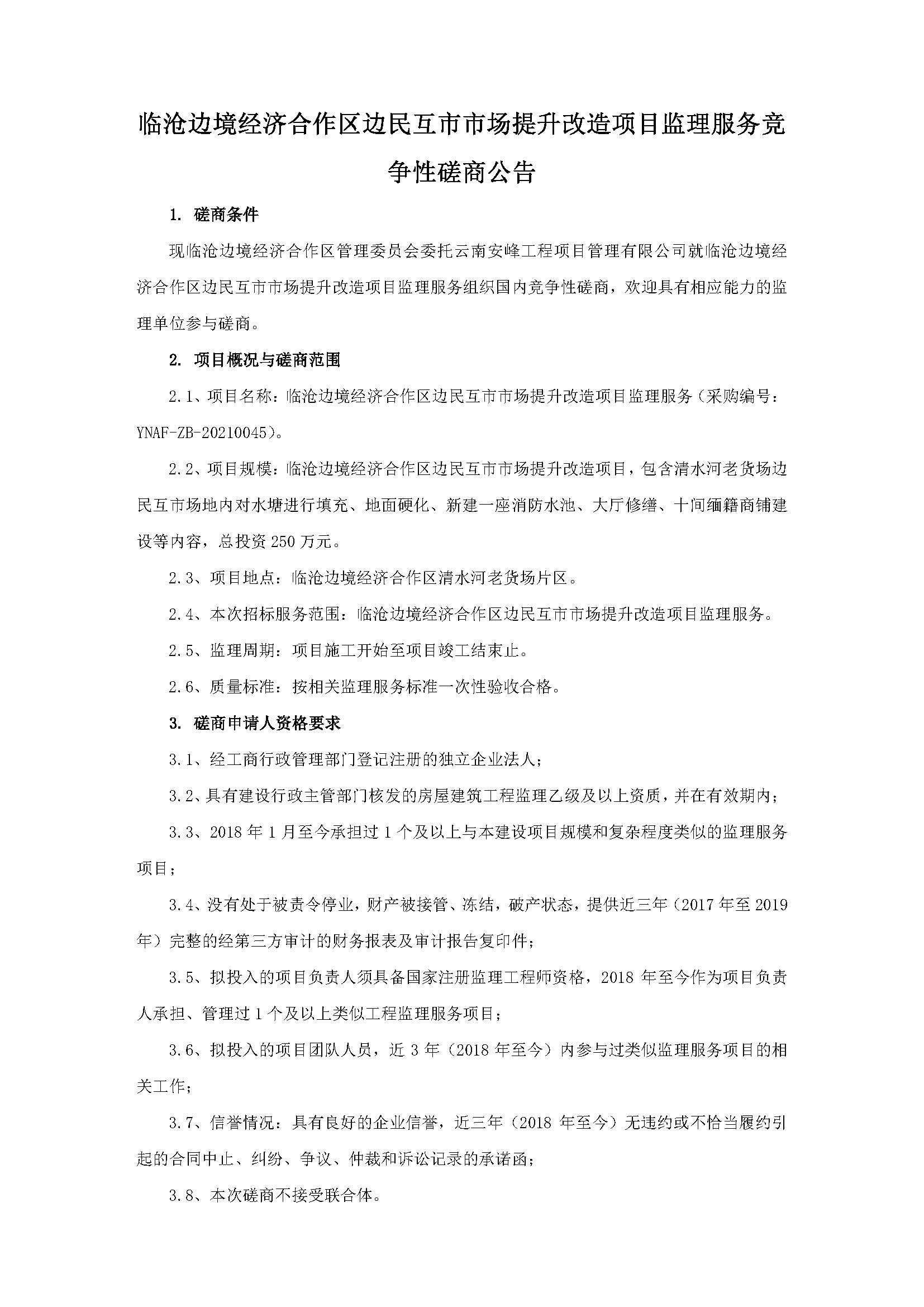臨滄邊境經(jīng)濟(jì)合作區(qū)邊民互市市場提升改造項(xiàng)目監(jiān)理服務(wù)競爭性磋商公告