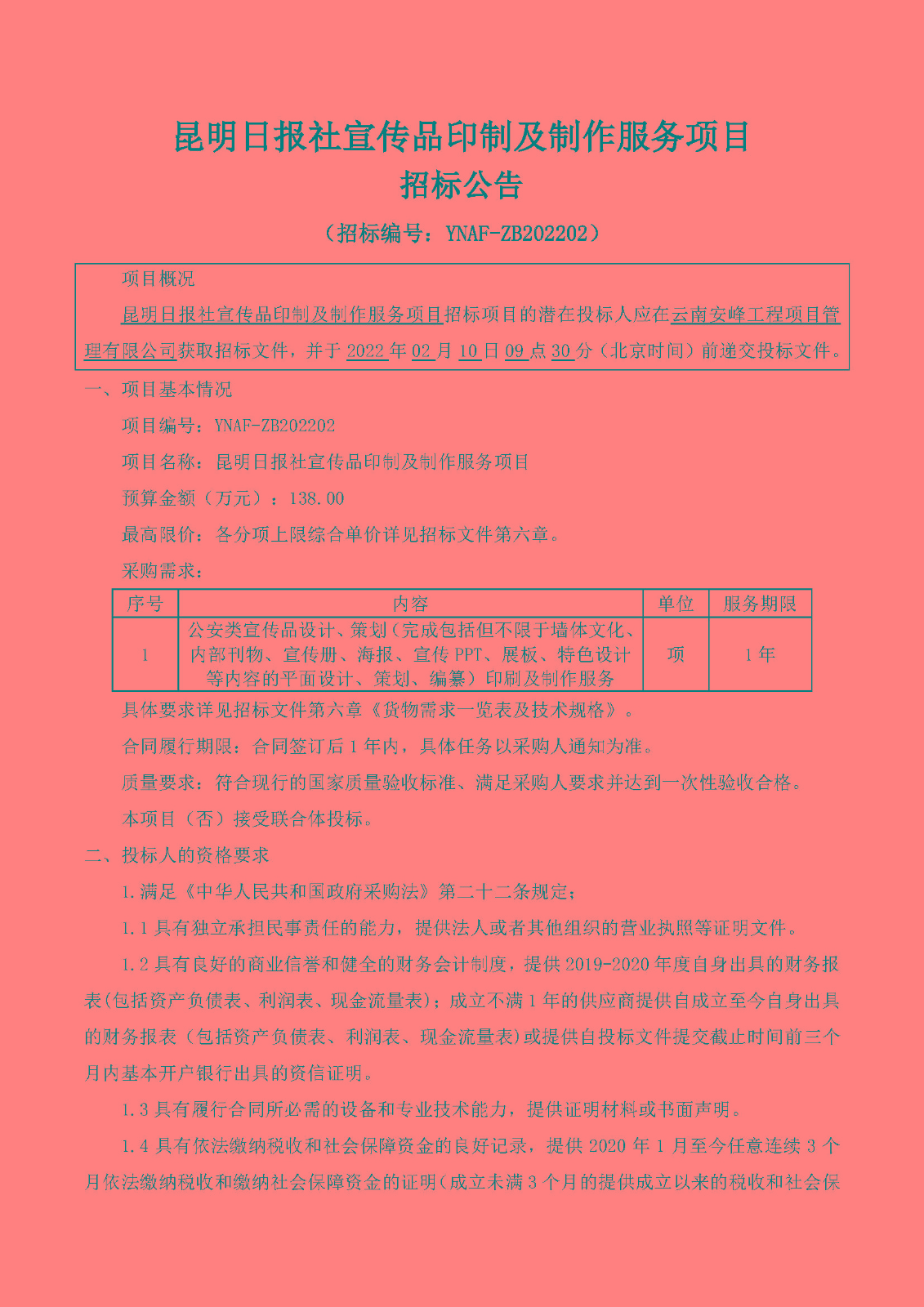 昆明日?qǐng)?bào)社宣傳品印制及制作服務(wù)項(xiàng)目招標(biāo)公告