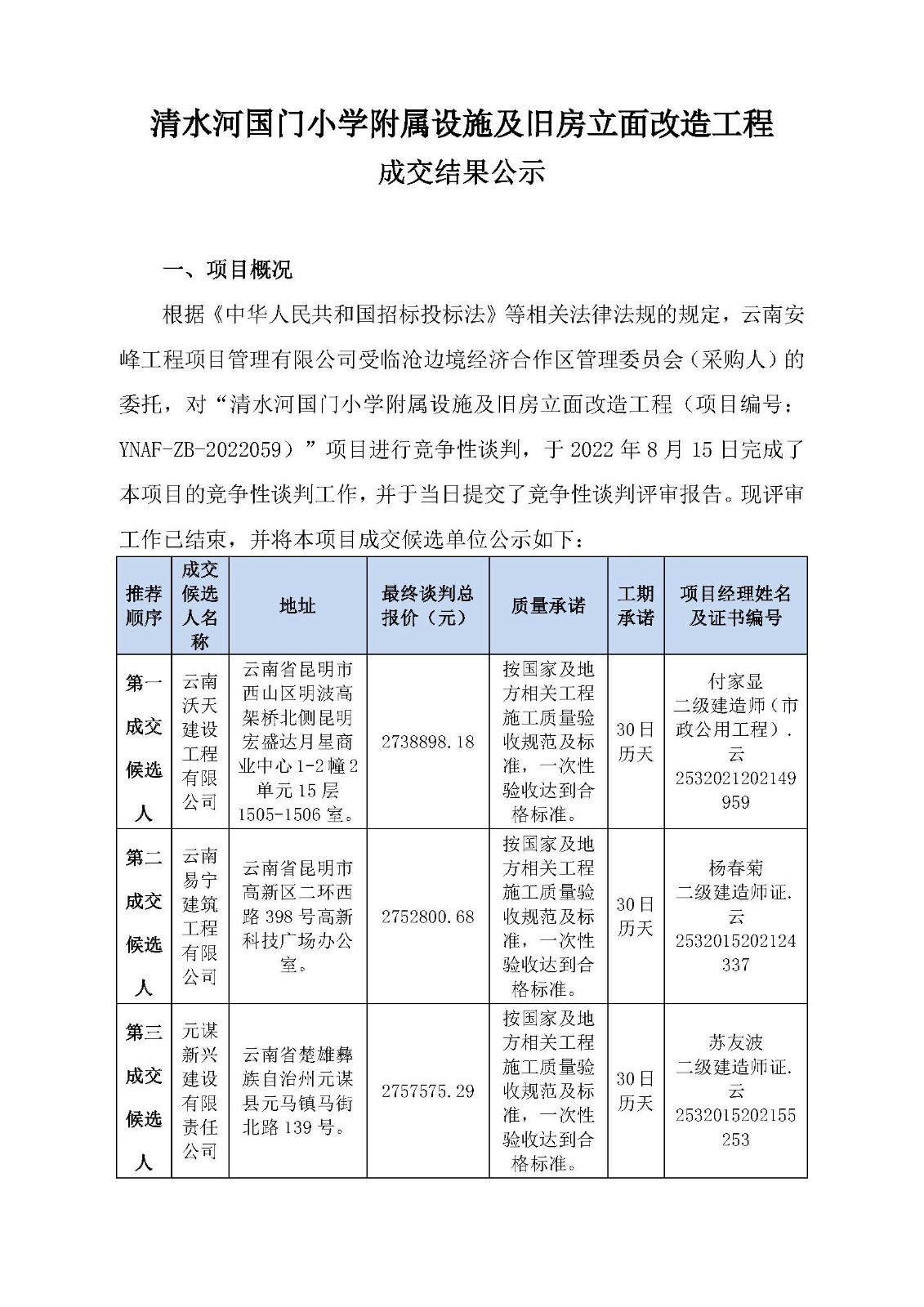 清水河國門小學(xué)附屬設(shè)施及舊房立面改造工程成交結(jié)果公示