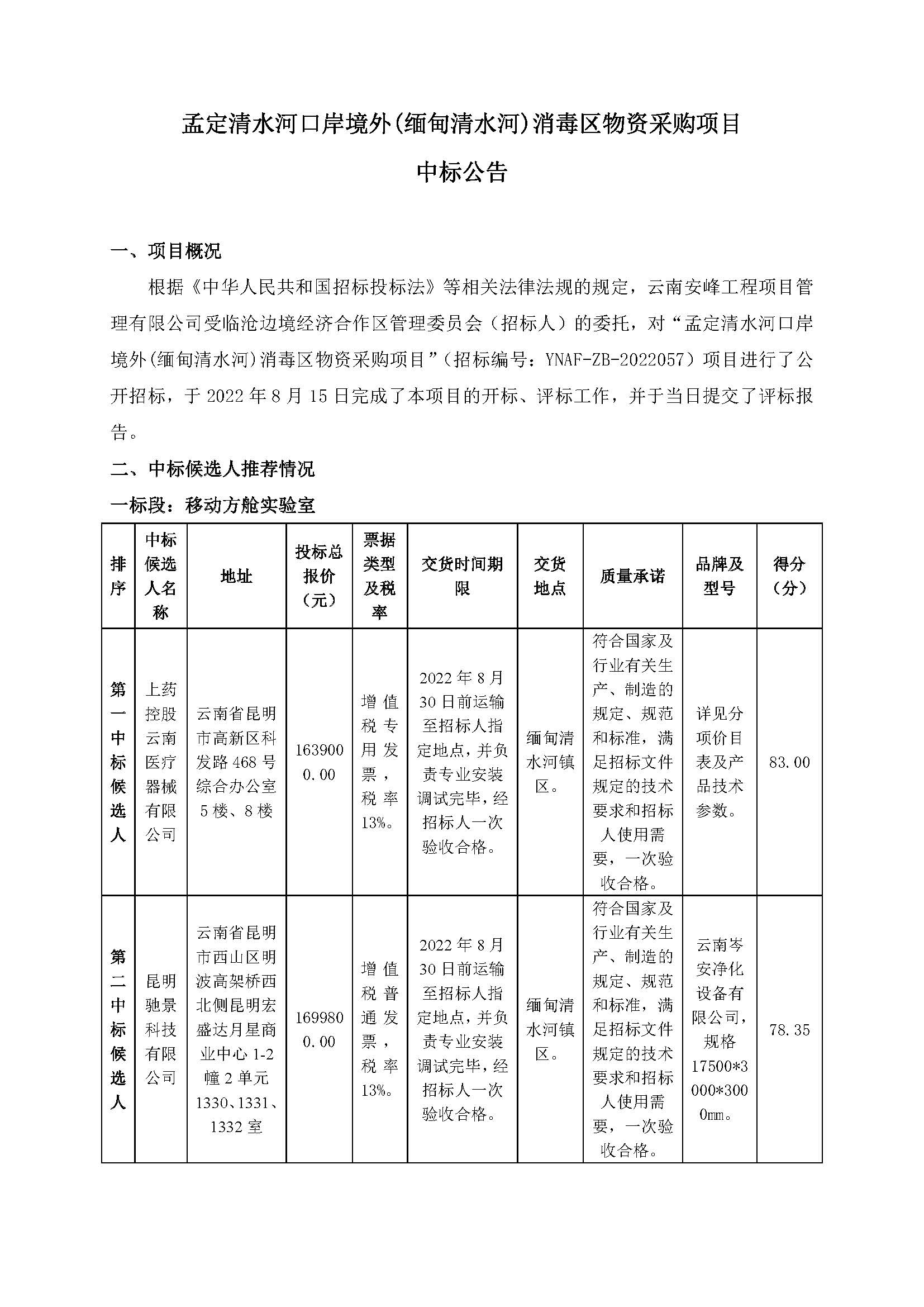 孟定清水河口岸境外(緬甸清水河)消毒區(qū)物資采購項目