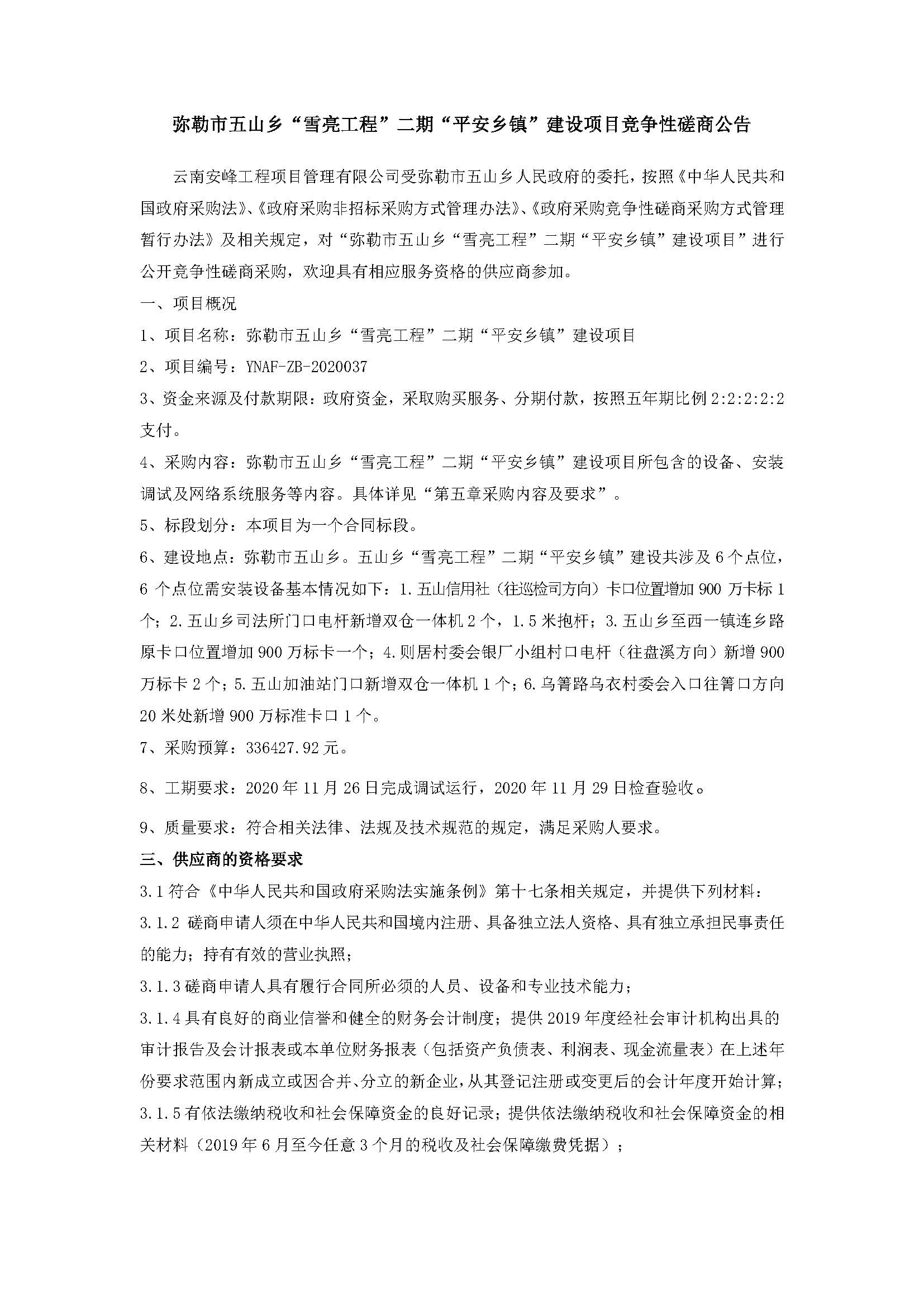 彌勒市五山鄉(xiāng)“雪亮工程”二期“平安鄉(xiāng)鎮(zhèn)”建設項目競爭性磋商公告