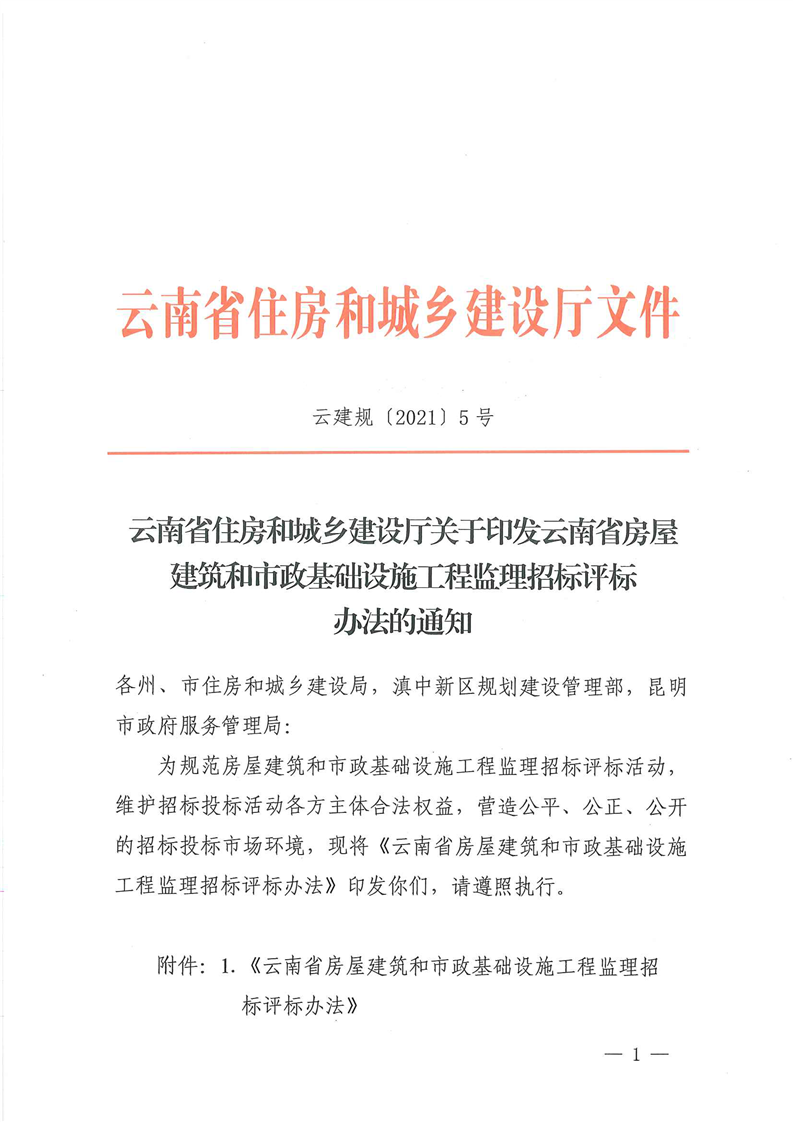 云南省住房和城鄉(xiāng)建設(shè)廳關(guān)于印發(fā)云南省房屋建筑和市政基礎(chǔ)設(shè)施工程施工招標(biāo)評(píng)標(biāo)辦法的通知(云建規(guī)【2021】4號(hào))