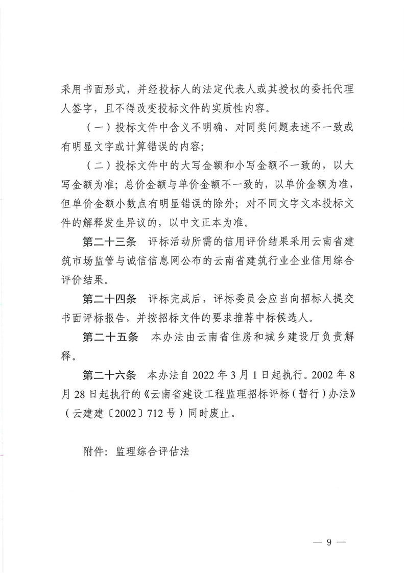 云南省住房和城鄉(xiāng)建設(shè)廳關(guān)于印發(fā)云南省房屋建筑和市政基礎(chǔ)設(shè)施工程監(jiān)理招標(biāo)評(píng)標(biāo)辦法的通知