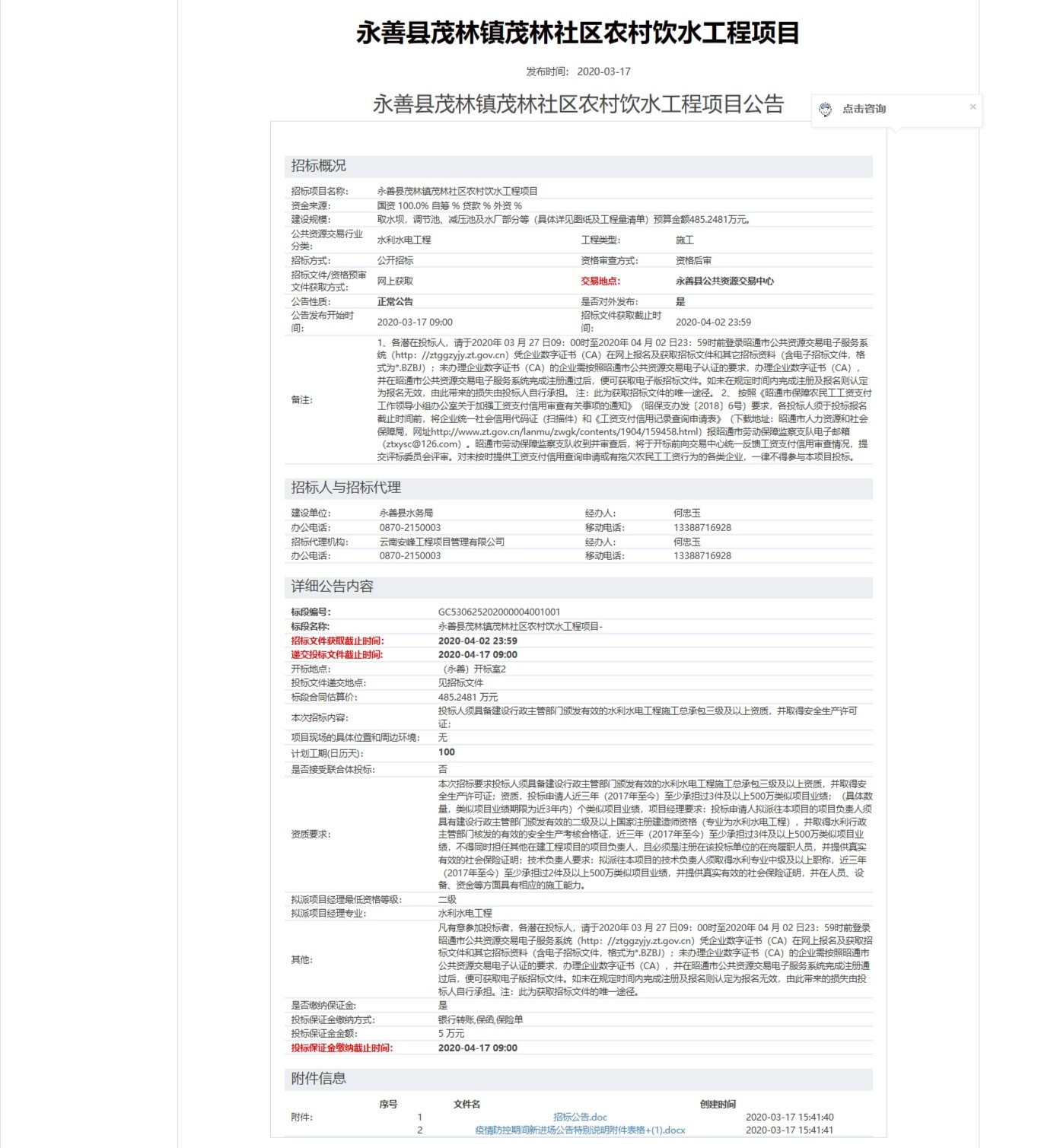 永善縣茂林鎮(zhèn)茂林社區(qū)農(nóng)村飲水工程項(xiàng)目 招標(biāo)公告