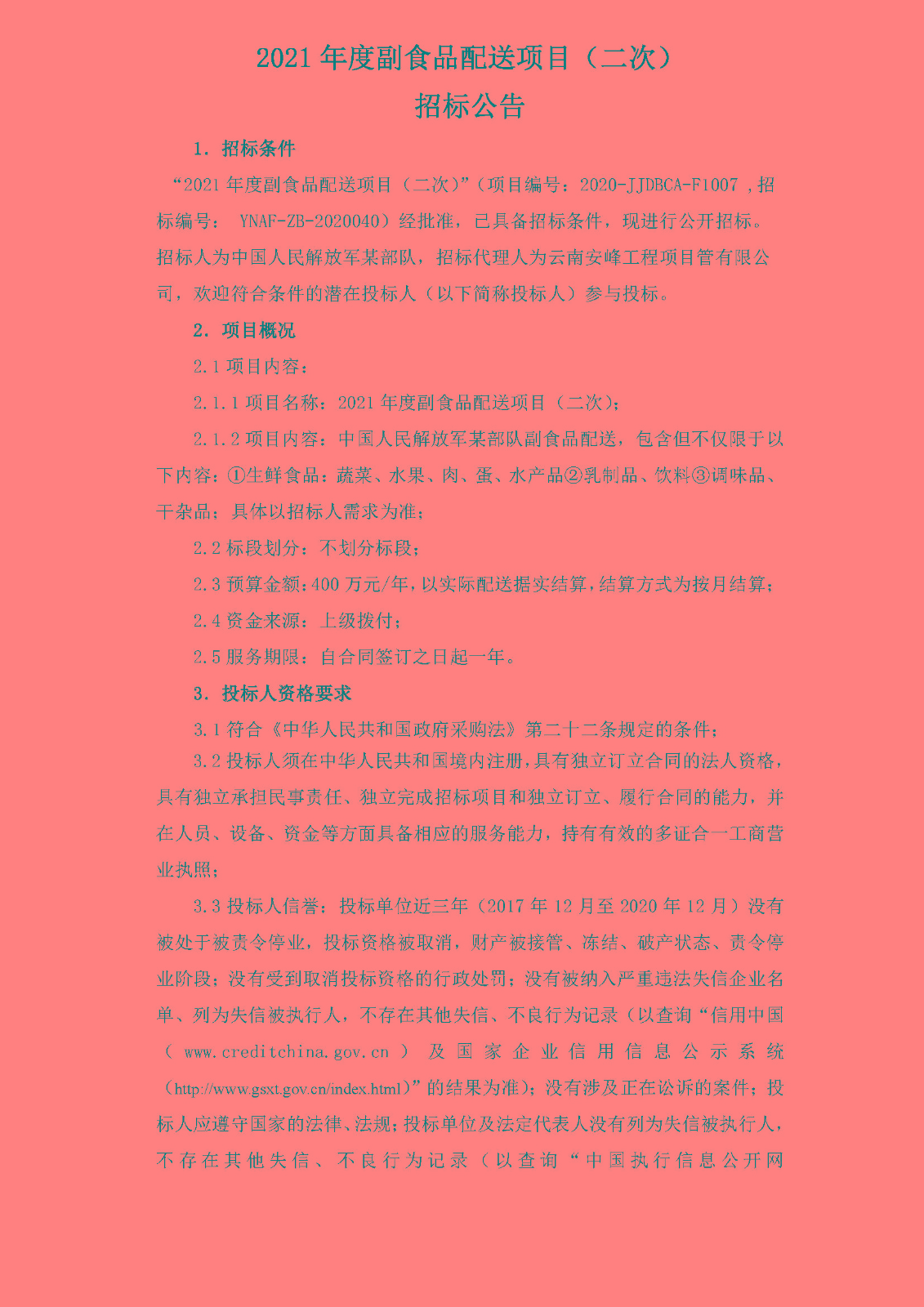 2021年度副食品配送項(xiàng)目(二次)招標(biāo)公告