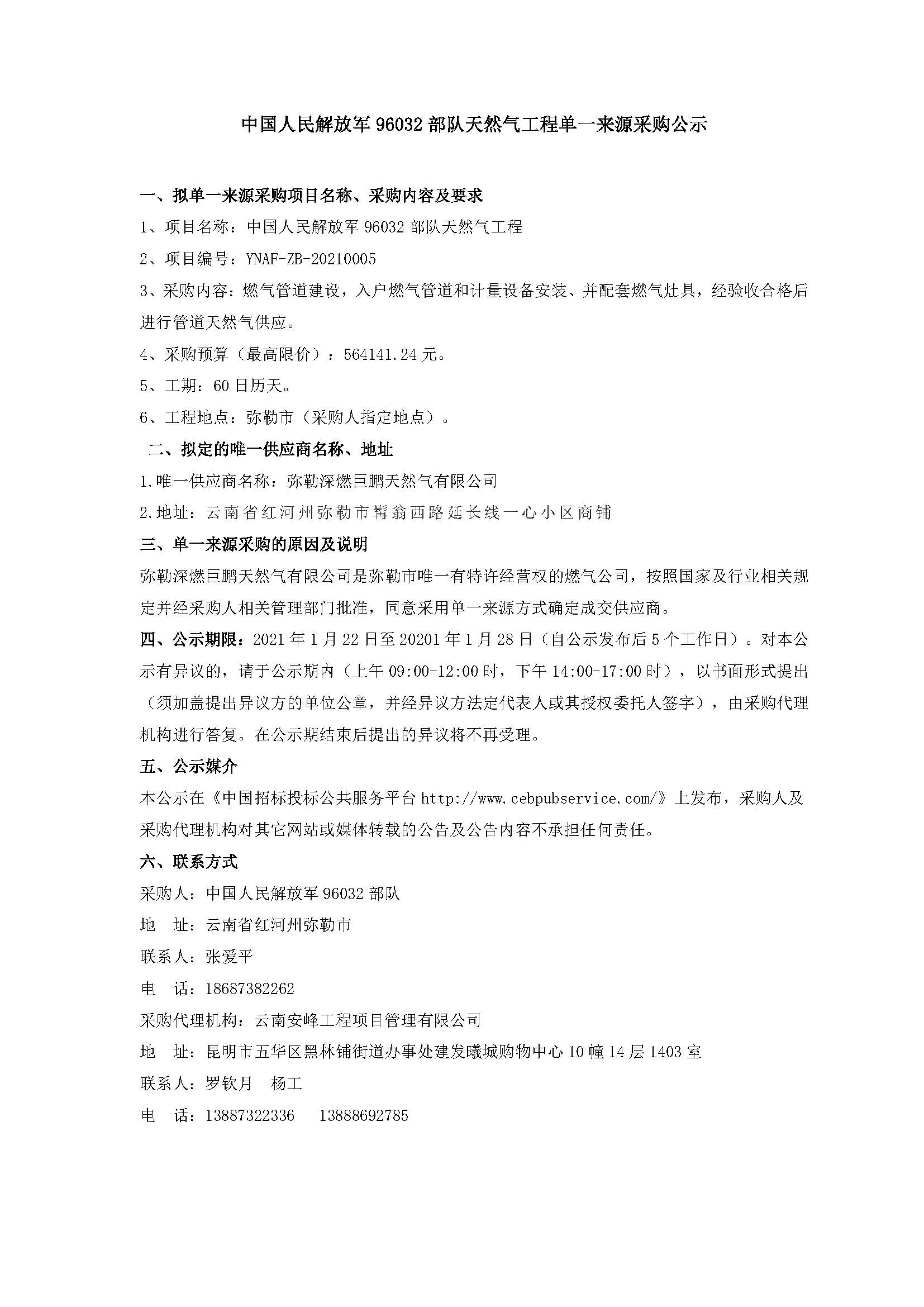 中國(guó)人民解放軍96032部隊(duì)天然氣工程單一來(lái)源采購(gòu)公示