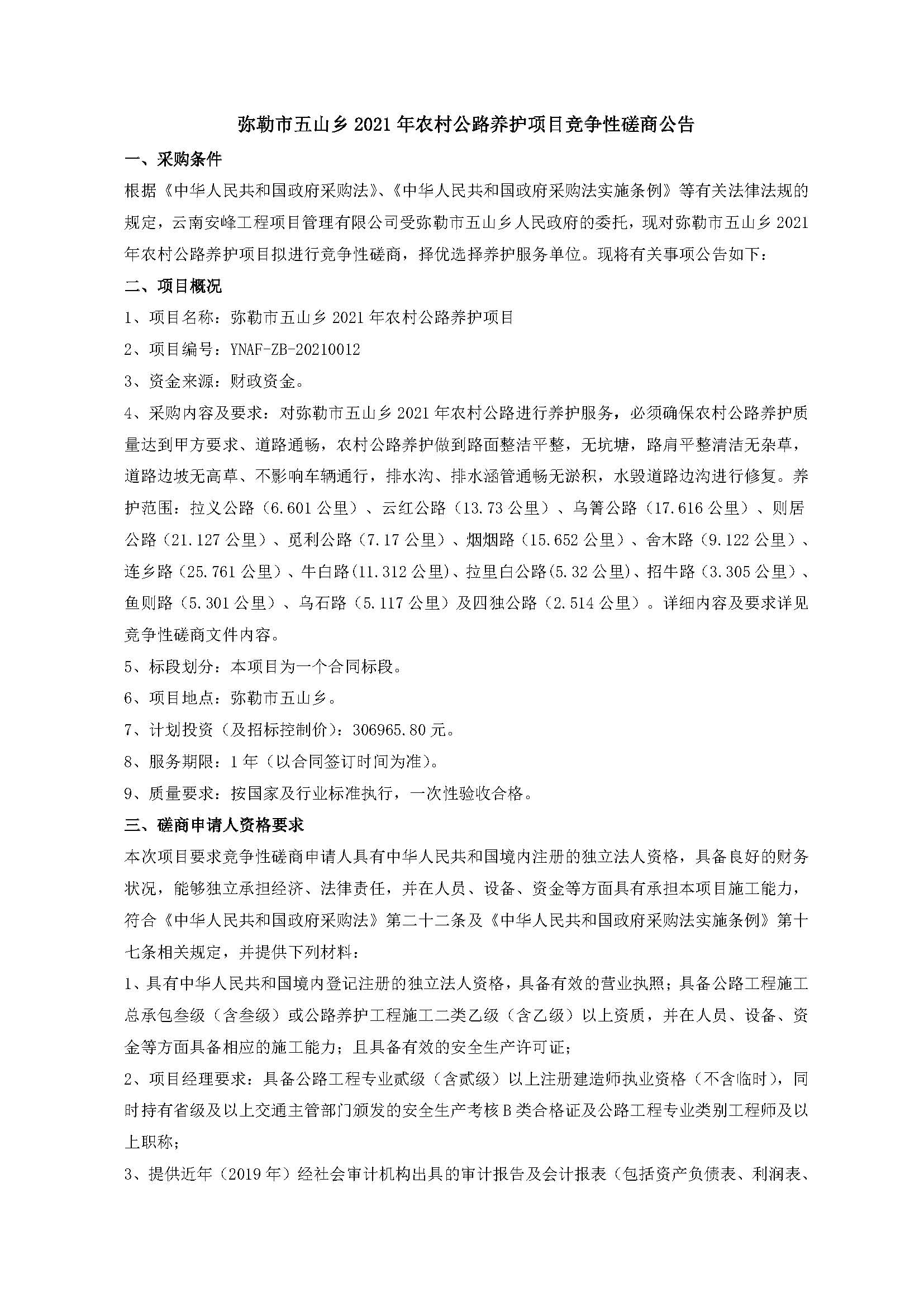彌勒市五山鄉(xiāng)2021年農(nóng)村公路養(yǎng)護(hù)項(xiàng)目競(jìng)爭(zhēng)性磋商公告