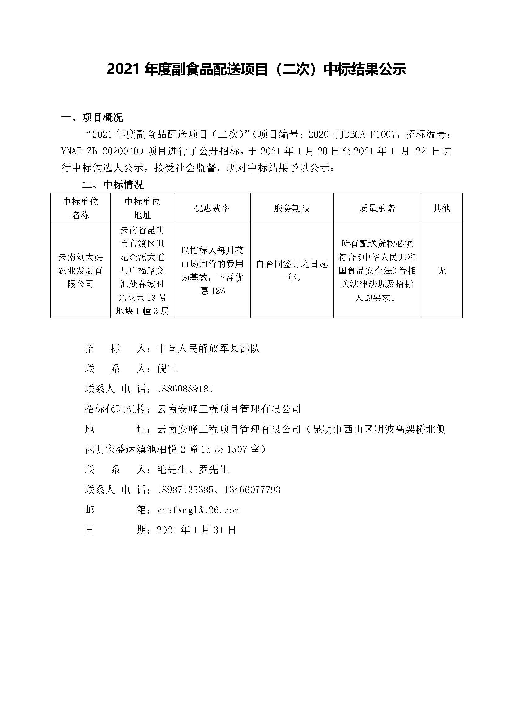 2021年度副食品配送項(xiàng)目(二次)中標(biāo)結(jié)果公示