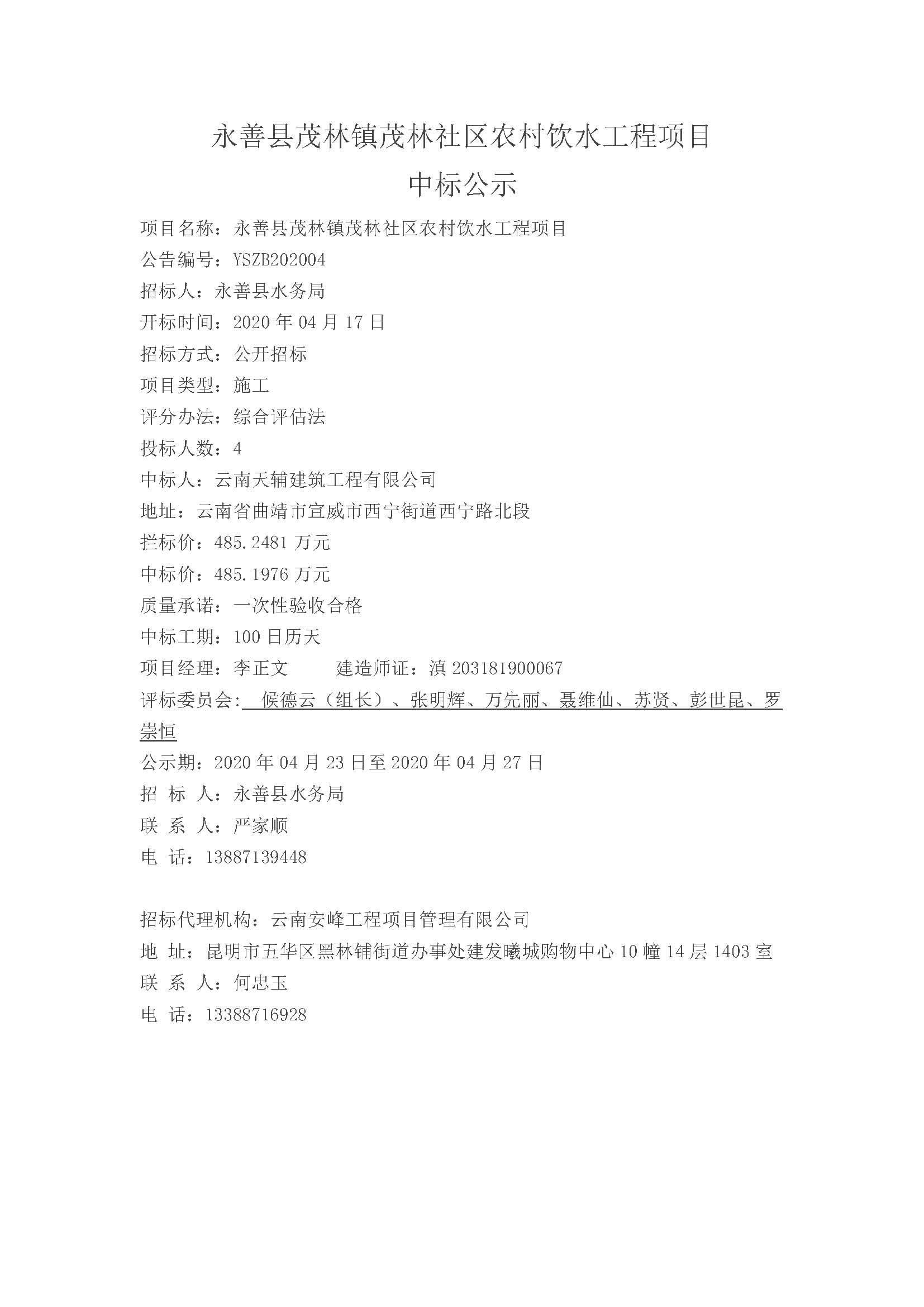 永善縣茂林鎮(zhèn)茂林社區(qū)農(nóng)村飲水工程項目