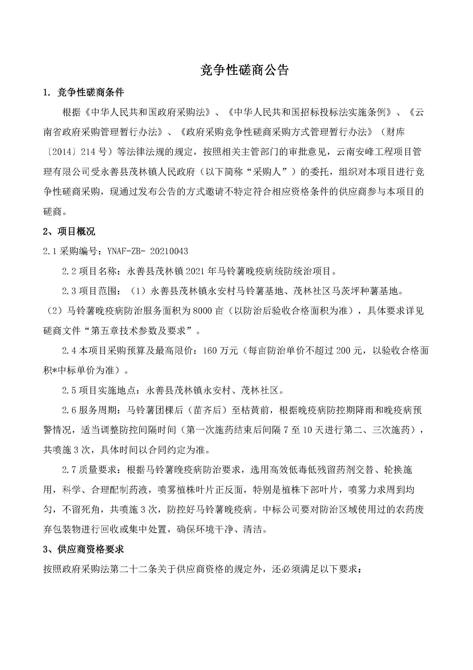 永善縣茂林鎮(zhèn)2021年馬鈴薯晚疫病統(tǒng)防統(tǒng)治項(xiàng)目競(jìng)爭(zhēng)性磋商公告