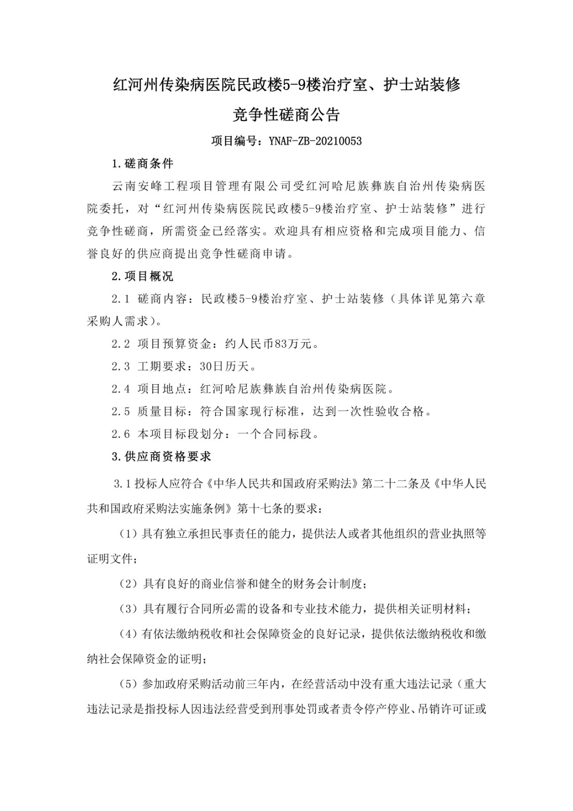 紅河州傳染病醫(yī)院民政樓5-9樓治療室、護(hù)士站裝修 競(jìng)爭(zhēng)性磋商公告