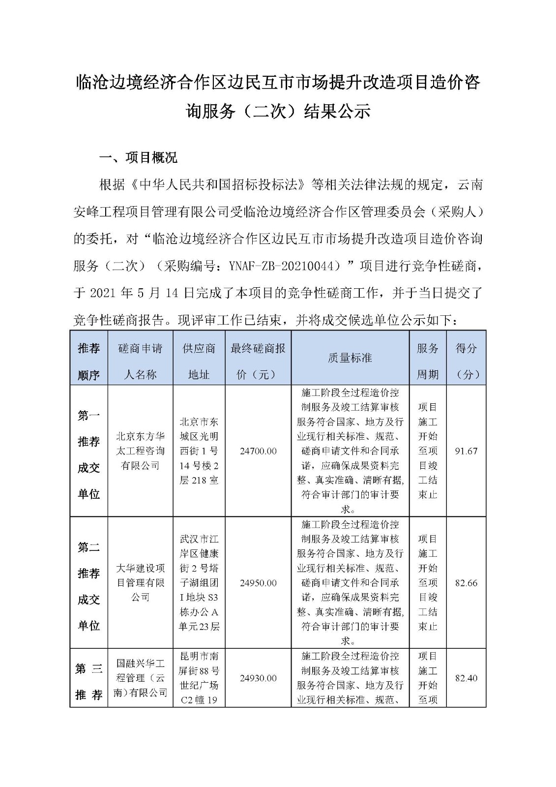 臨滄邊境經(jīng)濟合作區(qū)邊民互市市場提升改造項目造價咨詢服務(二次)結(jié)果公示