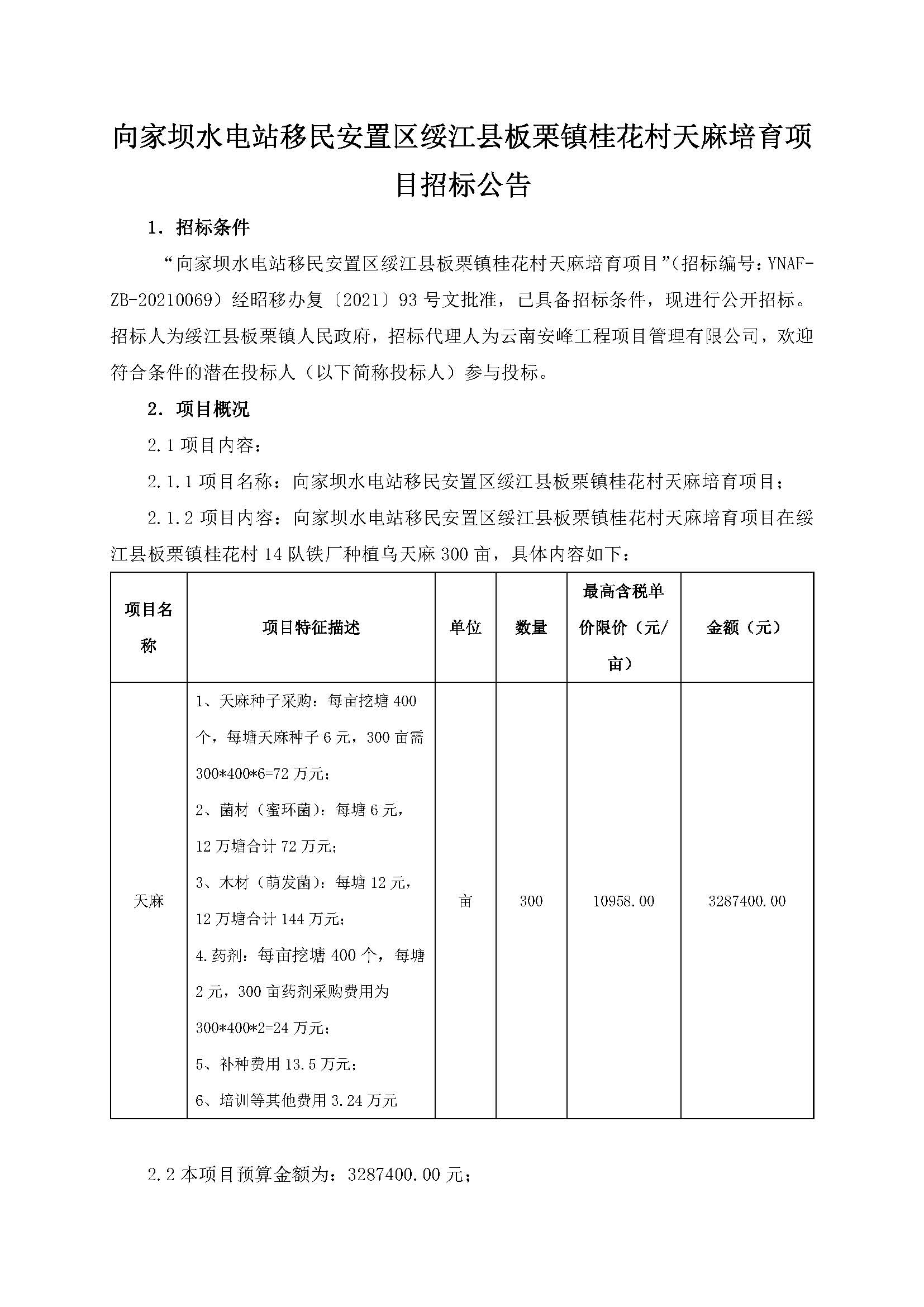 向家壩水電站移民安置區(qū)綏江縣板栗鎮(zhèn)桂花村天麻培育項(xiàng)目招標(biāo)公告