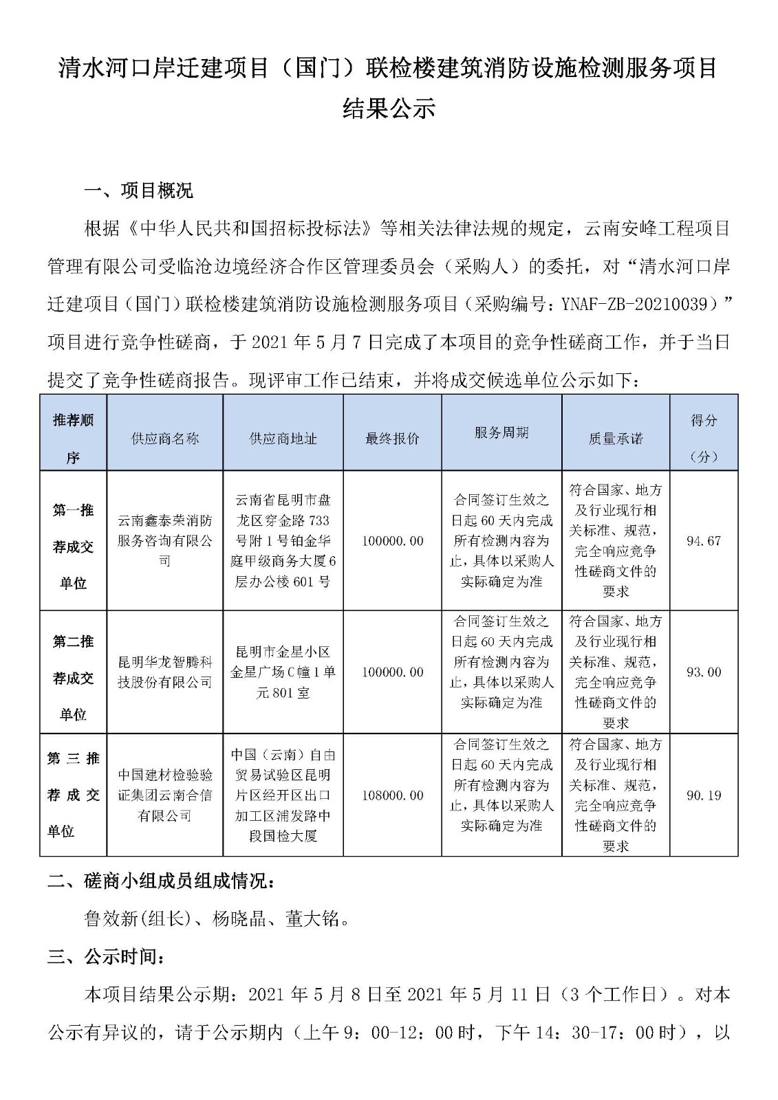 清水河口岸遷建項目(國門)聯(lián)檢樓建筑消防設施檢測服務項目結果公示