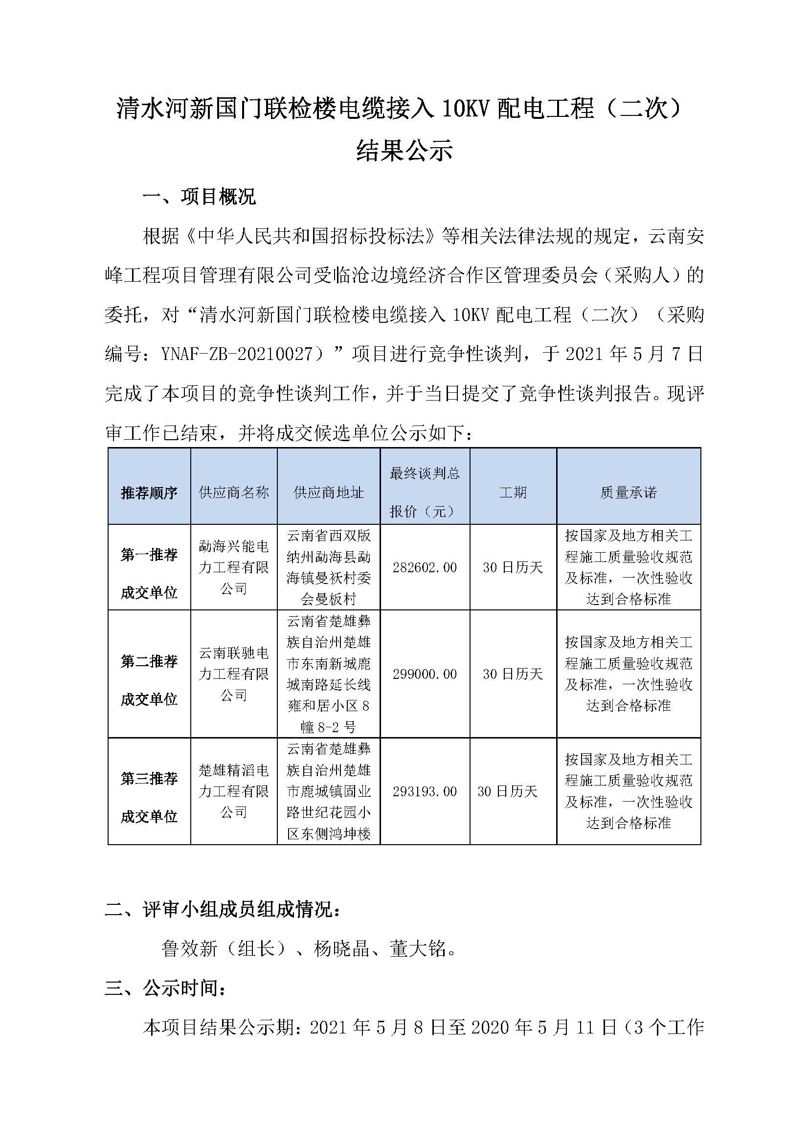 清水河新國(guó)門(mén)聯(lián)檢樓電纜接入10KV配電工程(二次)