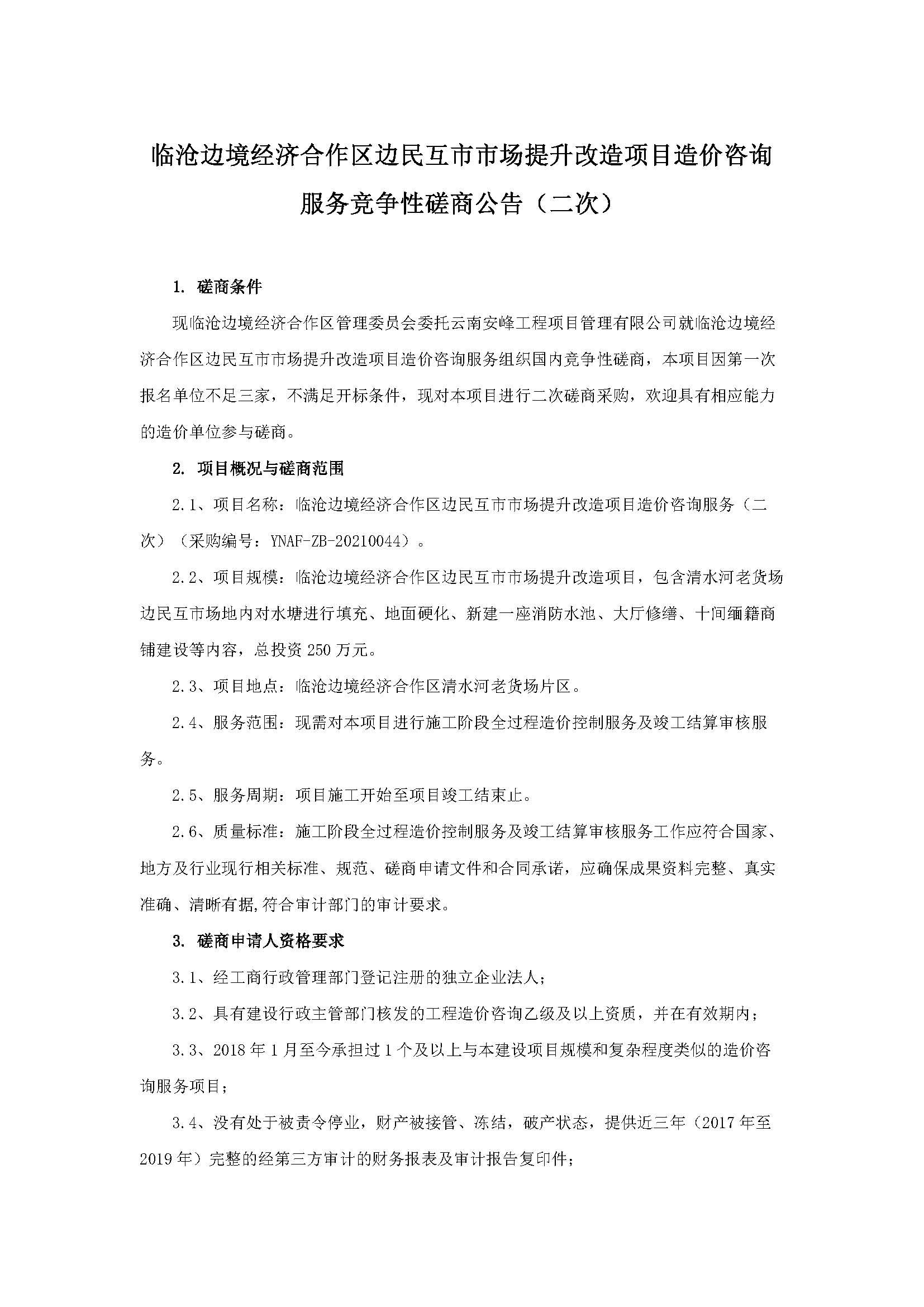 臨滄邊境經(jīng)濟(jì)合作區(qū)邊民互市市場提升改造項目造價咨詢服務(wù)競爭性磋商公告(二次)