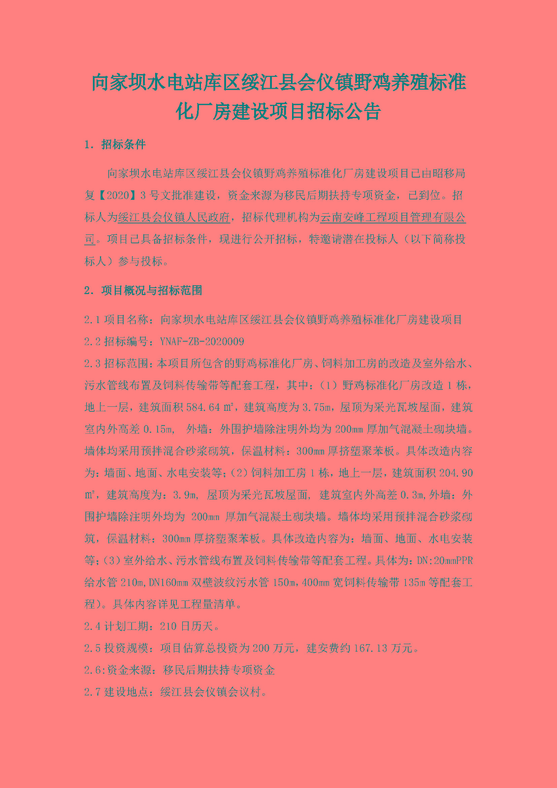 向家壩水電站庫區(qū)綏江縣會儀鎮(zhèn)野雞養(yǎng)殖標準化廠房建設(shè)項目
