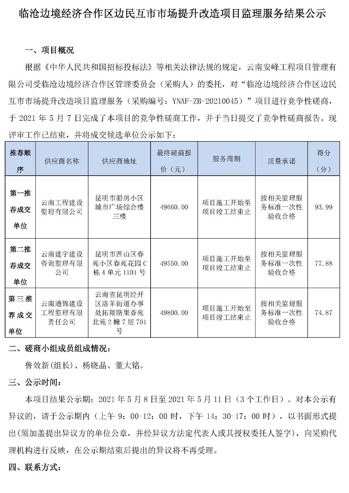 臨滄邊境經(jīng)濟(jì)合作區(qū)邊民互市市場提升改造項(xiàng)目監(jiān)理服務(wù)結(jié)果公示
