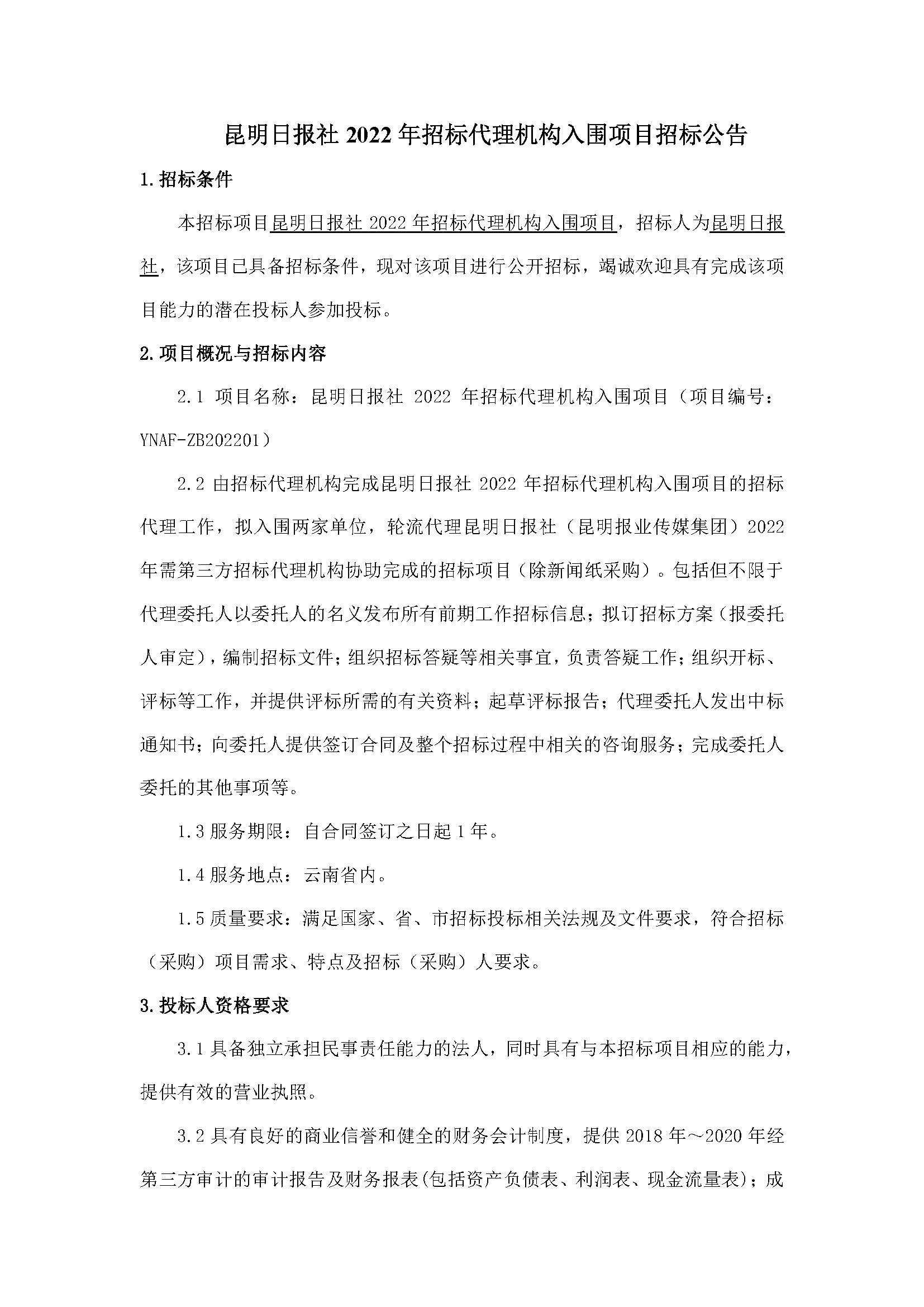 昆明日報社2022年招標(biāo)代理機構(gòu)入圍項目招標(biāo)公告