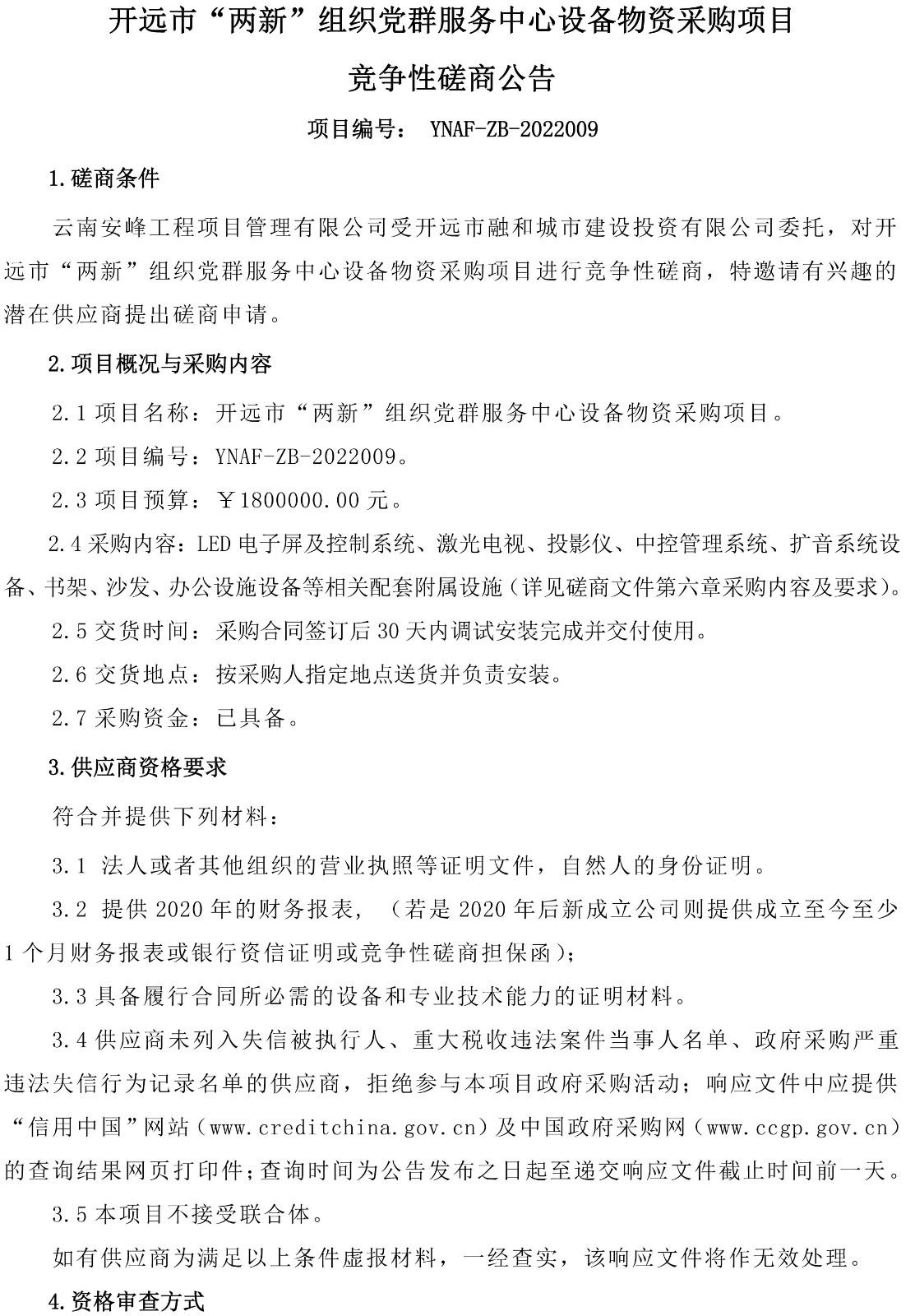 開(kāi)遠(yuǎn)市“兩新”組織黨群服務(wù)中心設(shè)備物資采購(gòu)項(xiàng)目競(jìng)爭(zhēng)性磋商公告