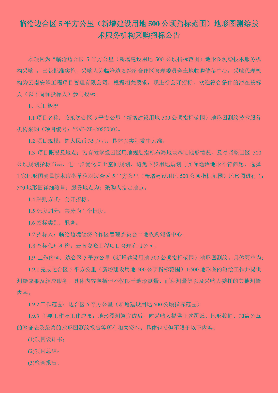 臨滄邊合區(qū)5平方公里(新增建設(shè)用地500公頃指標(biāo)范圍)地形圖測(cè)繪技術(shù)服務(wù)機(jī)構(gòu)采購(gòu)