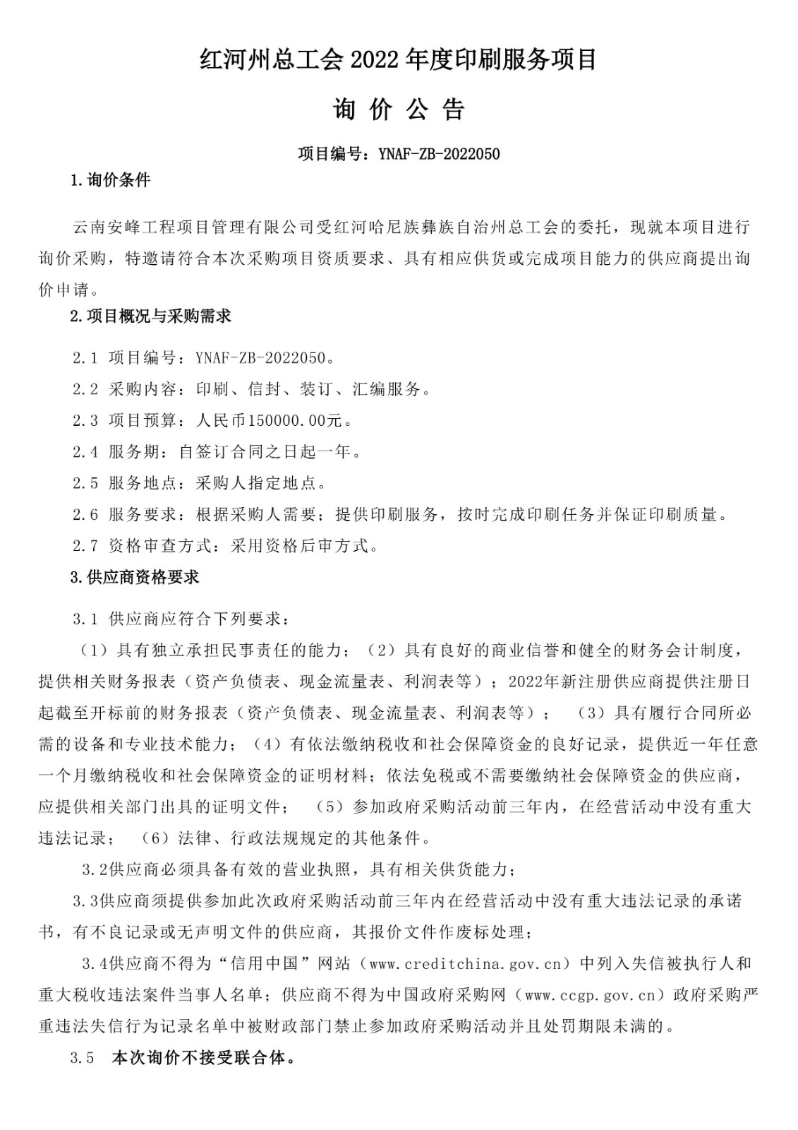 紅河州總工會2022年度印刷服務(wù)項目