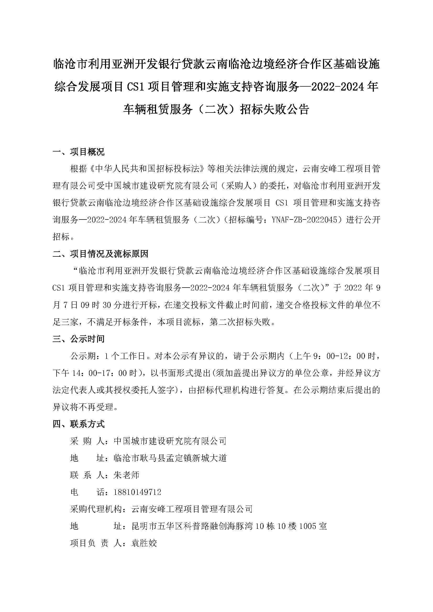 臨滄市利用亞洲開發(fā)銀行貸款云南臨滄邊境經(jīng)濟(jì)合作區(qū)基礎(chǔ)設(shè)施綜合發(fā)展項目CS1項目管理和實施支持咨詢服務(wù)—2022-2024年車輛租賃服務(wù)招標(biāo)失敗公告