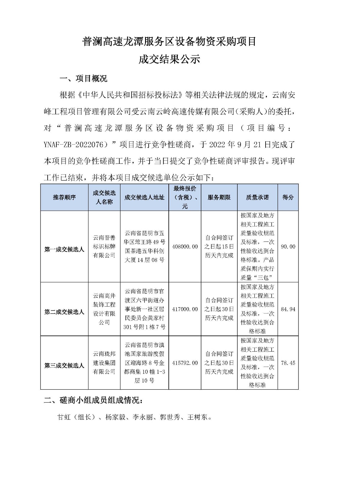 普瀾高速龍?zhí)斗?wù)區(qū)設(shè)備物資采購(gòu)項(xiàng)目