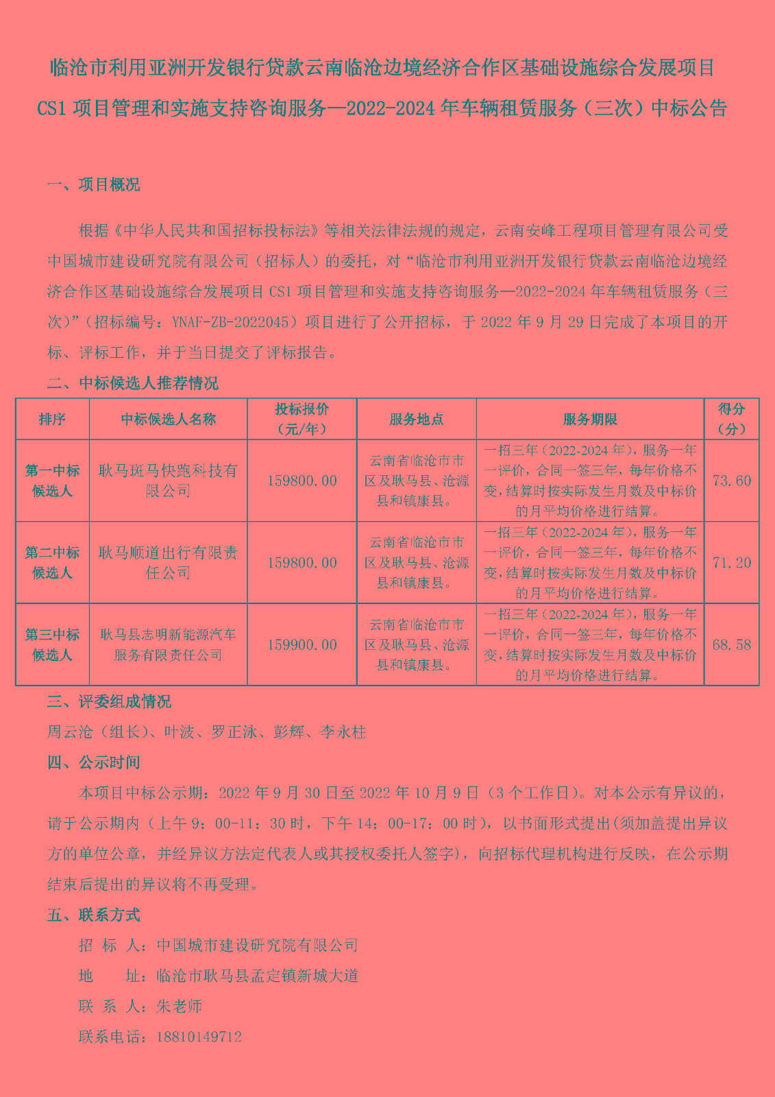 臨滄市利用亞洲開發(fā)銀行貸款云南臨滄邊境經(jīng)濟(jì)合作區(qū)基礎(chǔ)設(shè)施綜合發(fā)展項(xiàng)目CS1項(xiàng)目管理和實(shí)施支持咨詢服務(wù)—2022-2024年車輛租賃服務(wù)(三次)