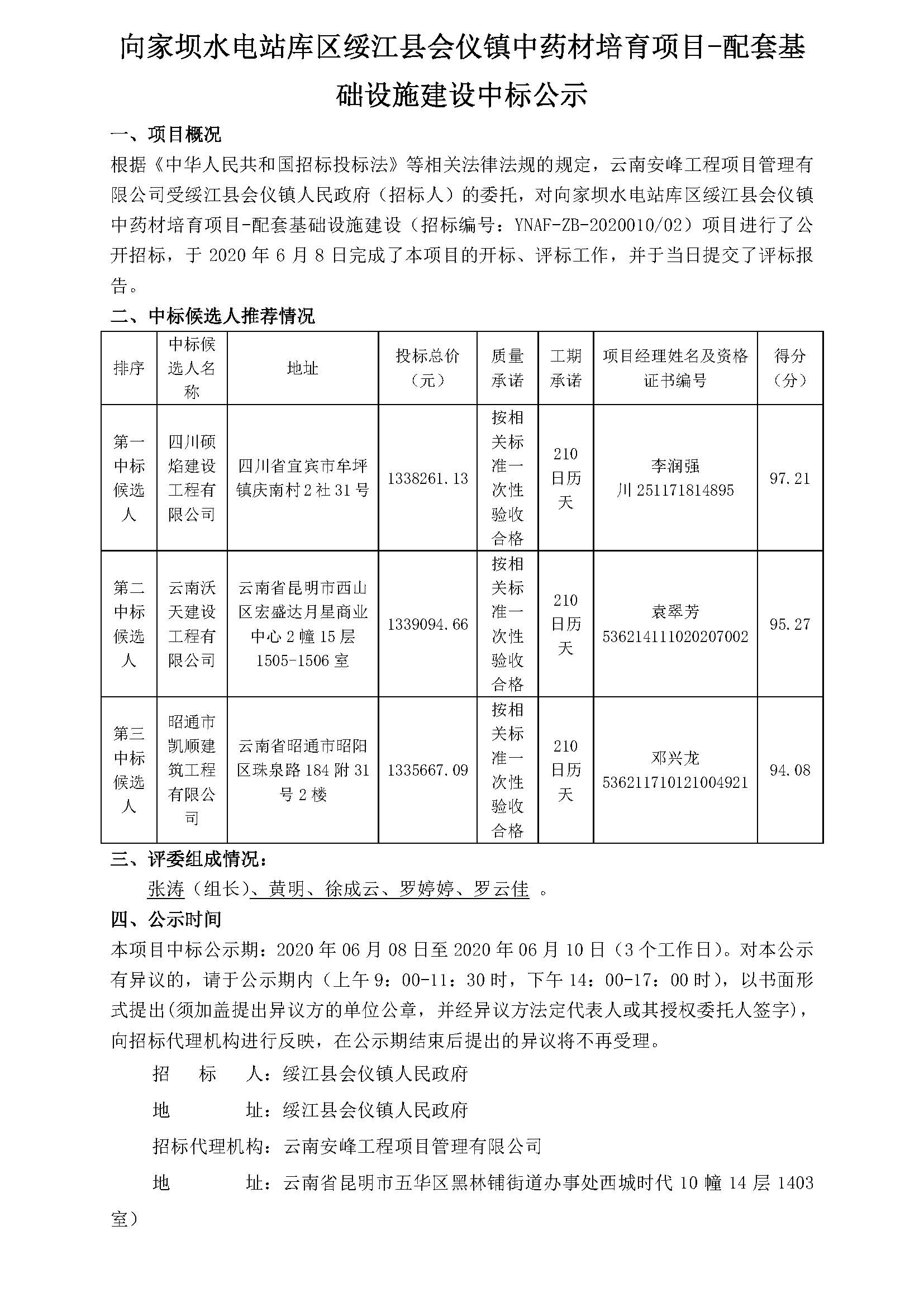 向家壩水電站庫區(qū)綏江縣會儀鎮(zhèn)中藥材培育項(xiàng)目-配套基礎(chǔ)設(shè)施建設(shè)中標(biāo)公示