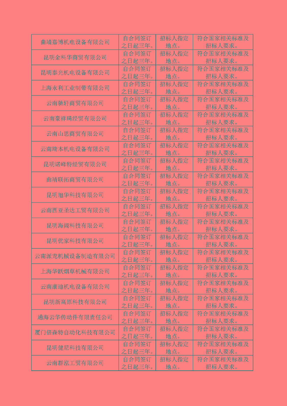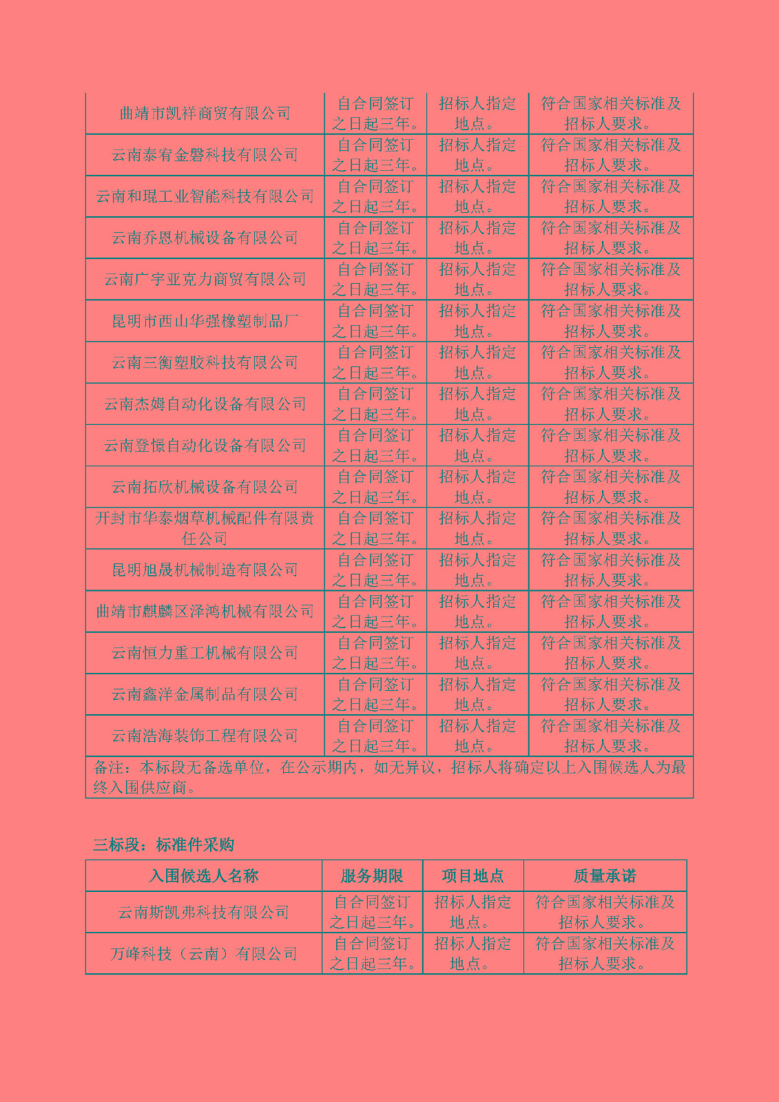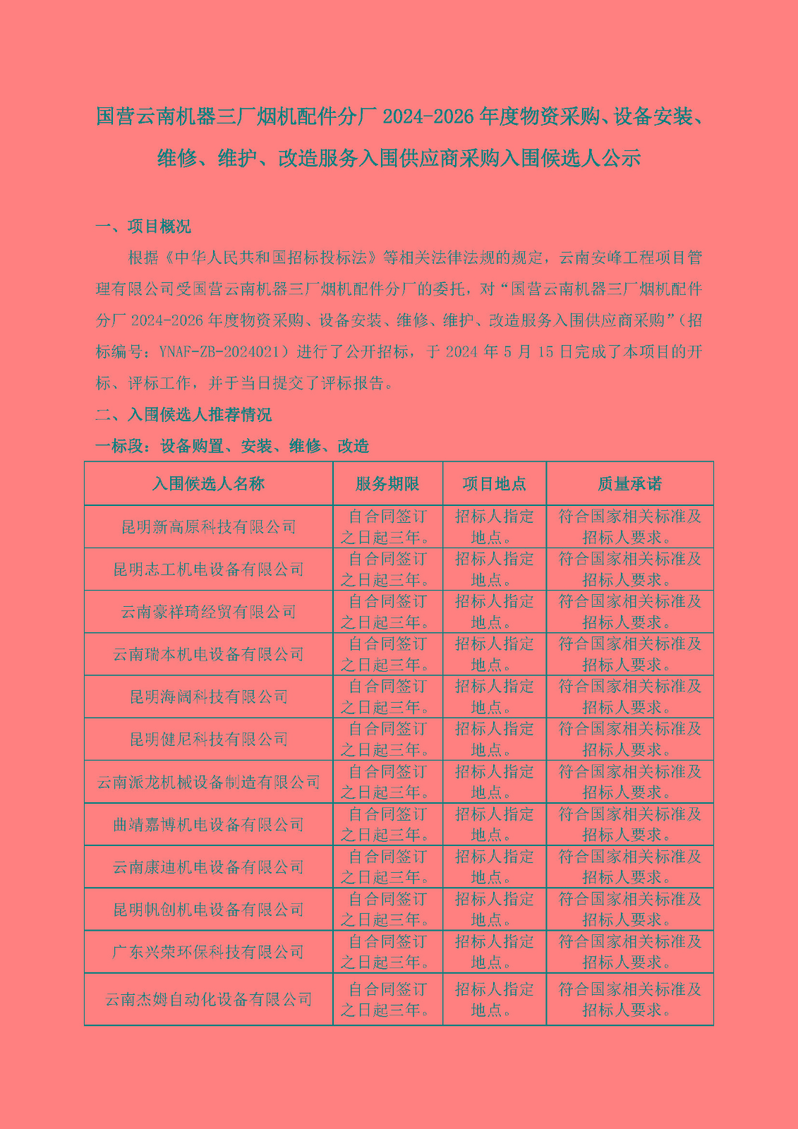 國(guó)營(yíng)云南機(jī)器三廠煙機(jī)配件分廠2024-2026年度物資采購(gòu)、設(shè)備安裝、維修、維護(hù)、改造服務(wù)入圍供應(yīng)商采購(gòu)入圍候選人公示