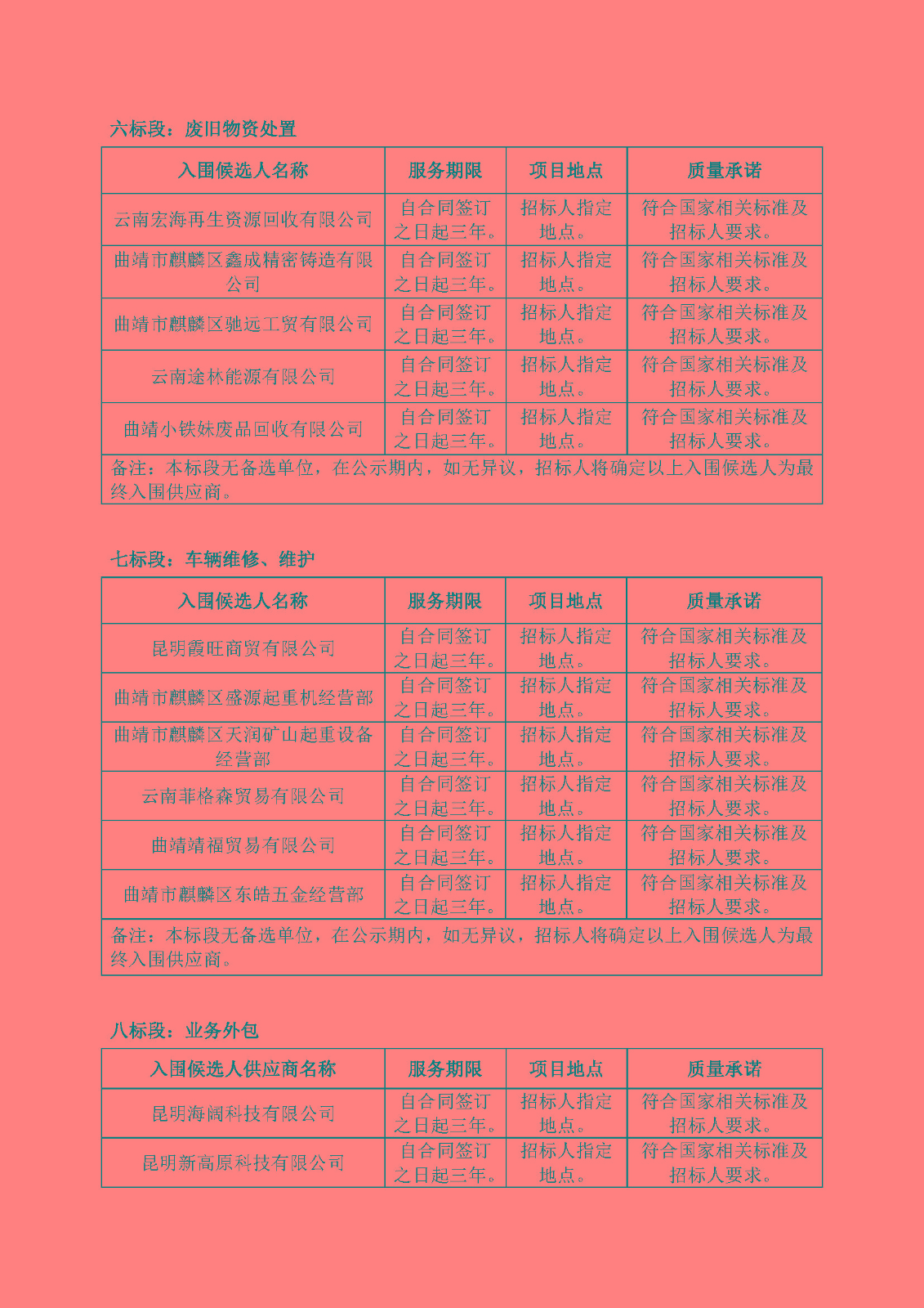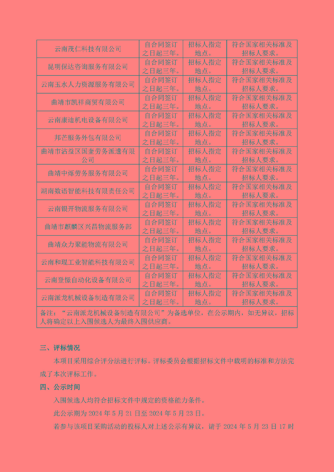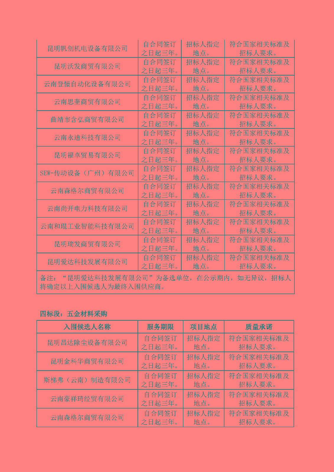 國(guó)營(yíng)云南機(jī)器三廠煙機(jī)配件分廠2024-2026年度物資采購(gòu)、設(shè)備安裝、維修、維護(hù)、改造服務(wù)入圍供應(yīng)商采購(gòu)入圍候選人公示