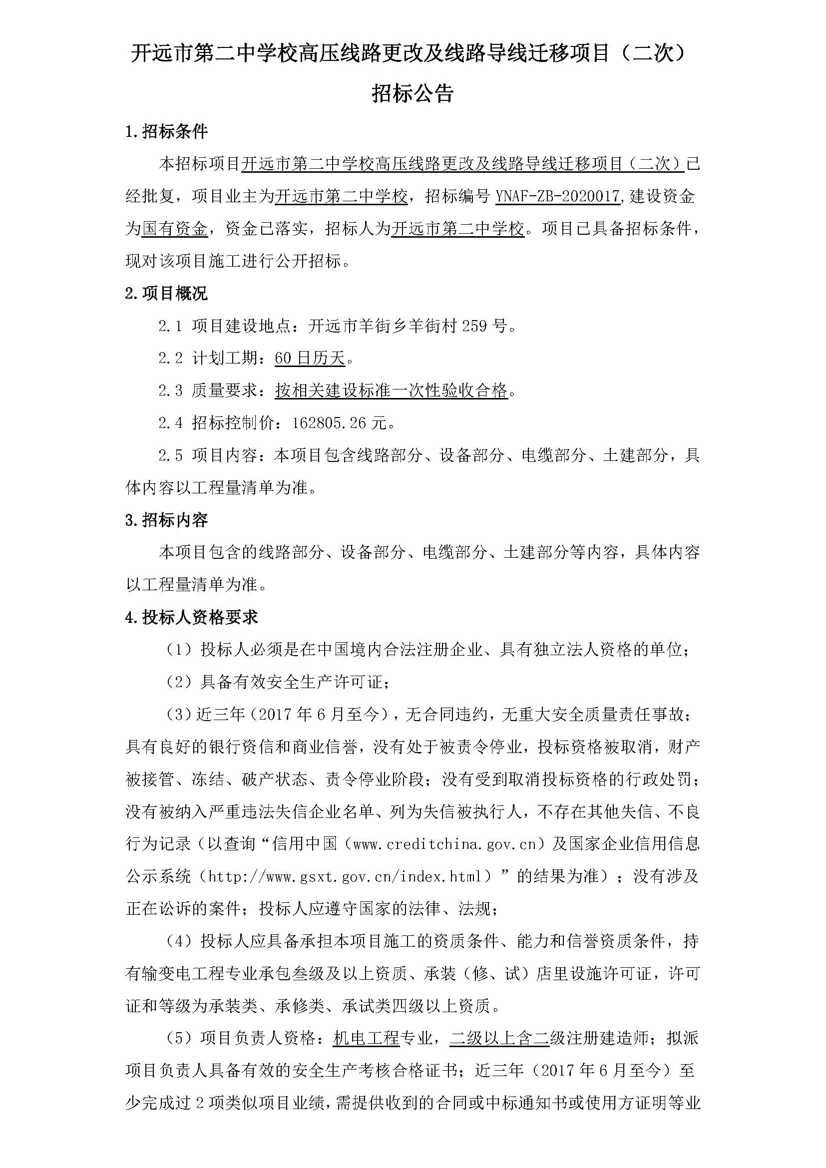 開遠(yuǎn)市第二中學(xué)校高壓線路更改及線路導(dǎo)線遷移項(xiàng)目(二次) 招標(biāo)公告