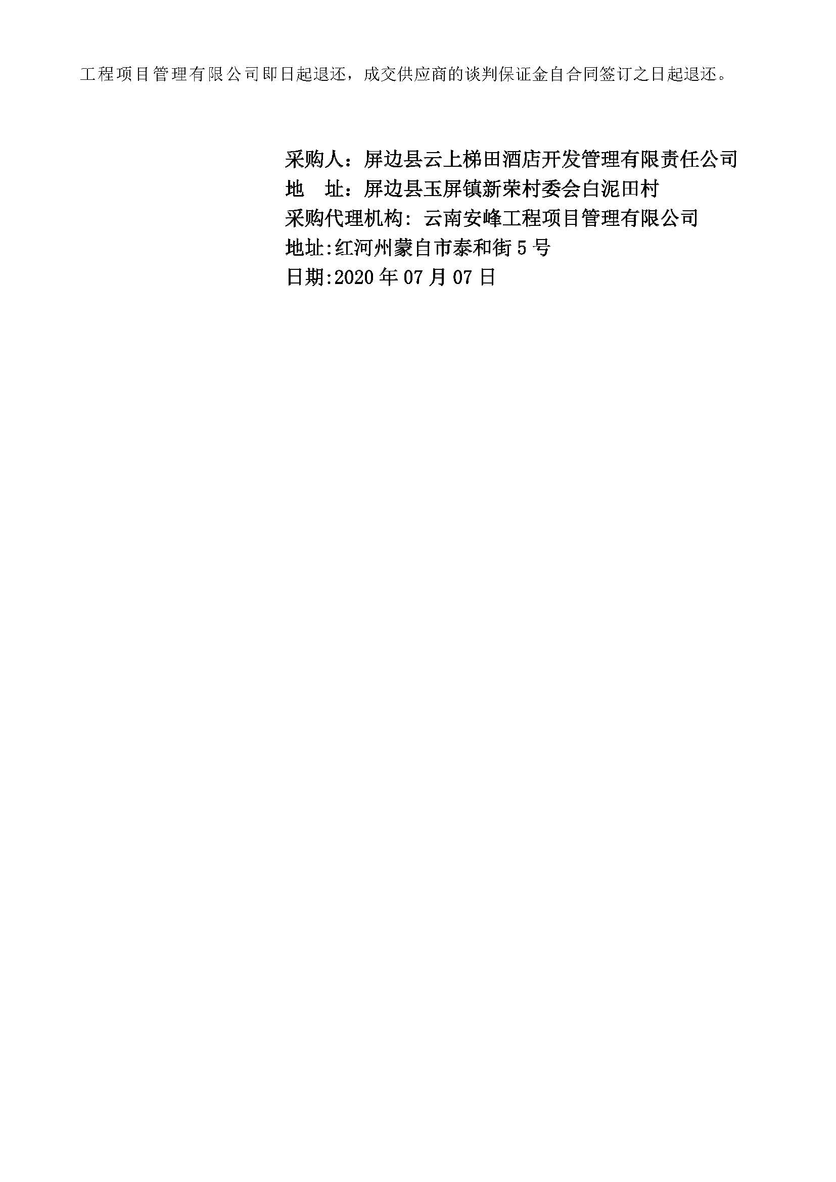 屏邊牧羊河山水度假酒店物業(yè)管理(安保、工程維修)服務(wù)成交公告