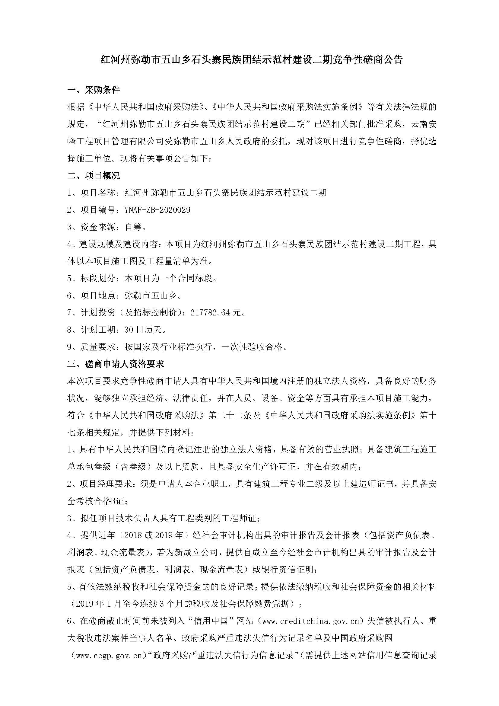 紅河州彌勒市五山鄉(xiāng)石頭寨民族團(tuán)結(jié)示范村建設(shè)二期競(jìng)爭(zhēng)性磋商公告