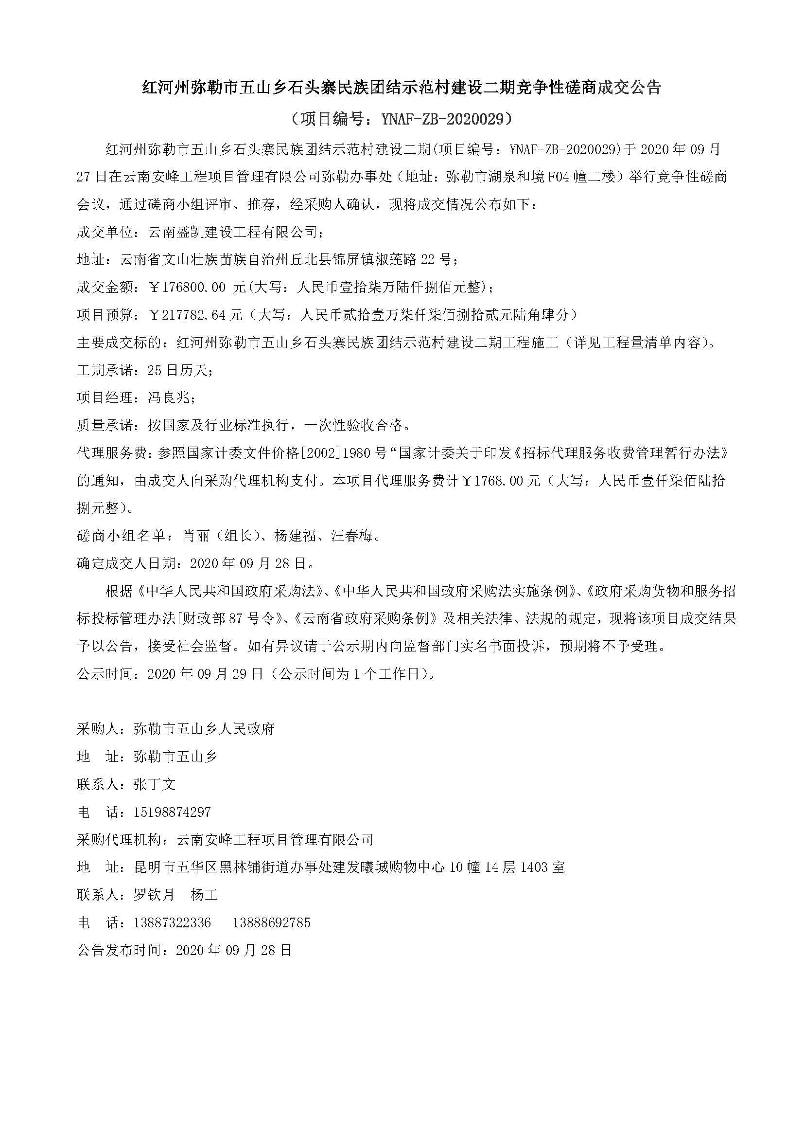 紅河州彌勒市五山鄉(xiāng)石頭寨民族團結(jié)示范村建設(shè)二期競爭性磋商成交公告