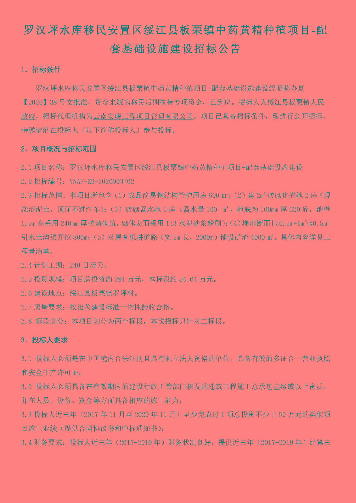 羅漢坪水庫(kù)移民安置區(qū)綏江縣板栗鎮(zhèn)中藥黃精種植項(xiàng)目-配套基礎(chǔ)設(shè)施建設(shè)招標(biāo)公告
